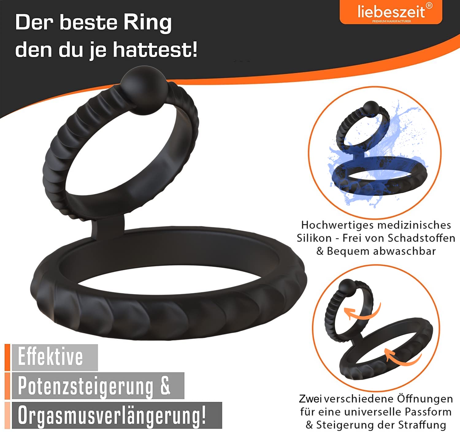 Details: The new, improved version 2.0 of the innovative dual penis ring from LIEBESZEIT for maximum erection & potency increase!