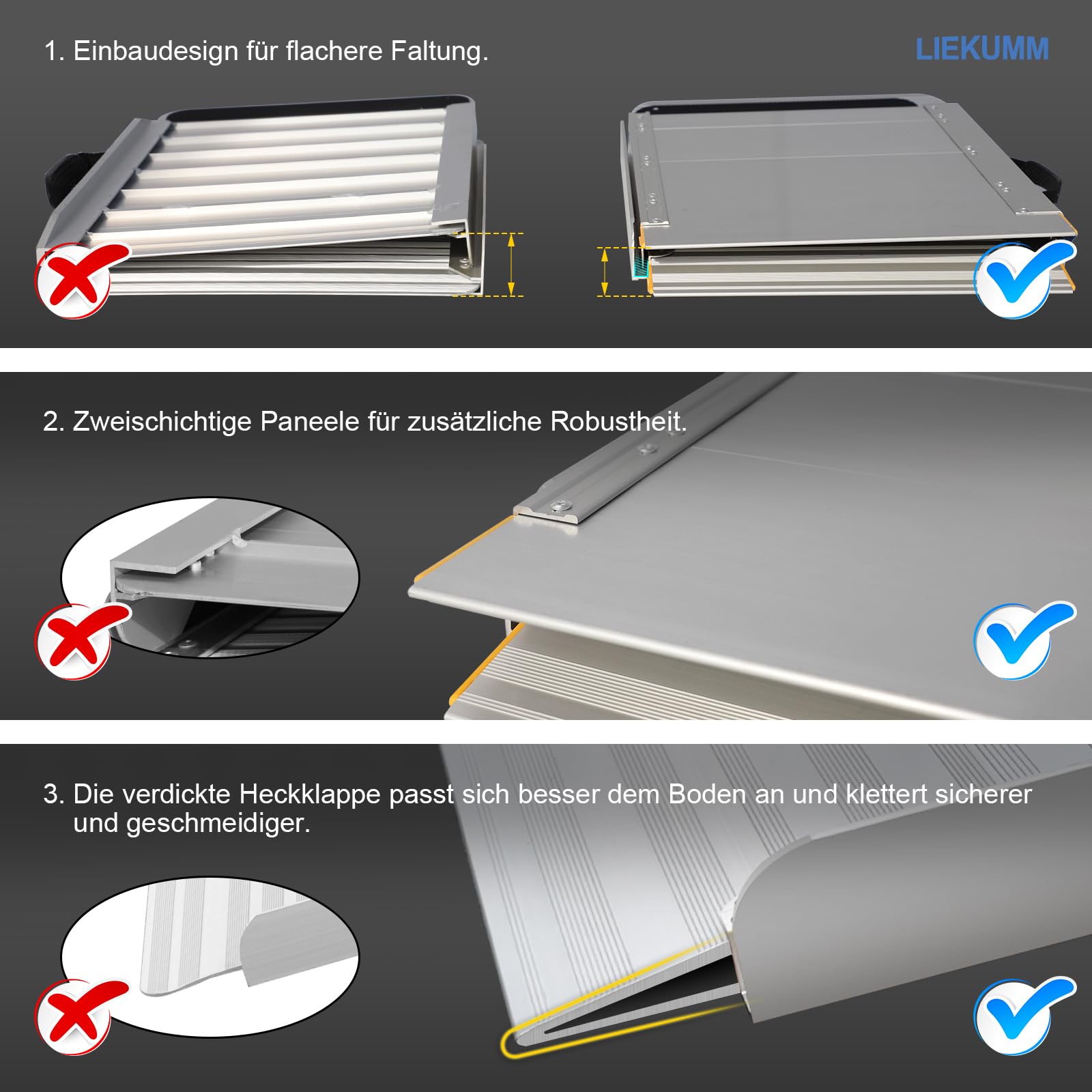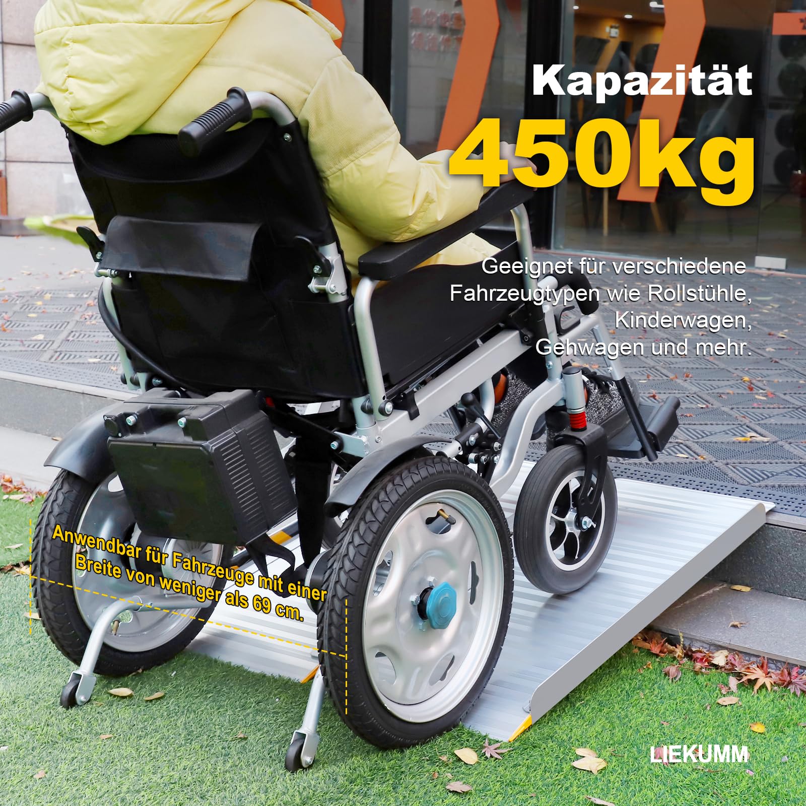 Brand: LIEKUMM Color: Silvery Characteristics: 【Foldable Wheelchair Ramp】Our aluminum wheelchair ramp measures 60 x 76 x 6.5 cm when unfolded... Read more