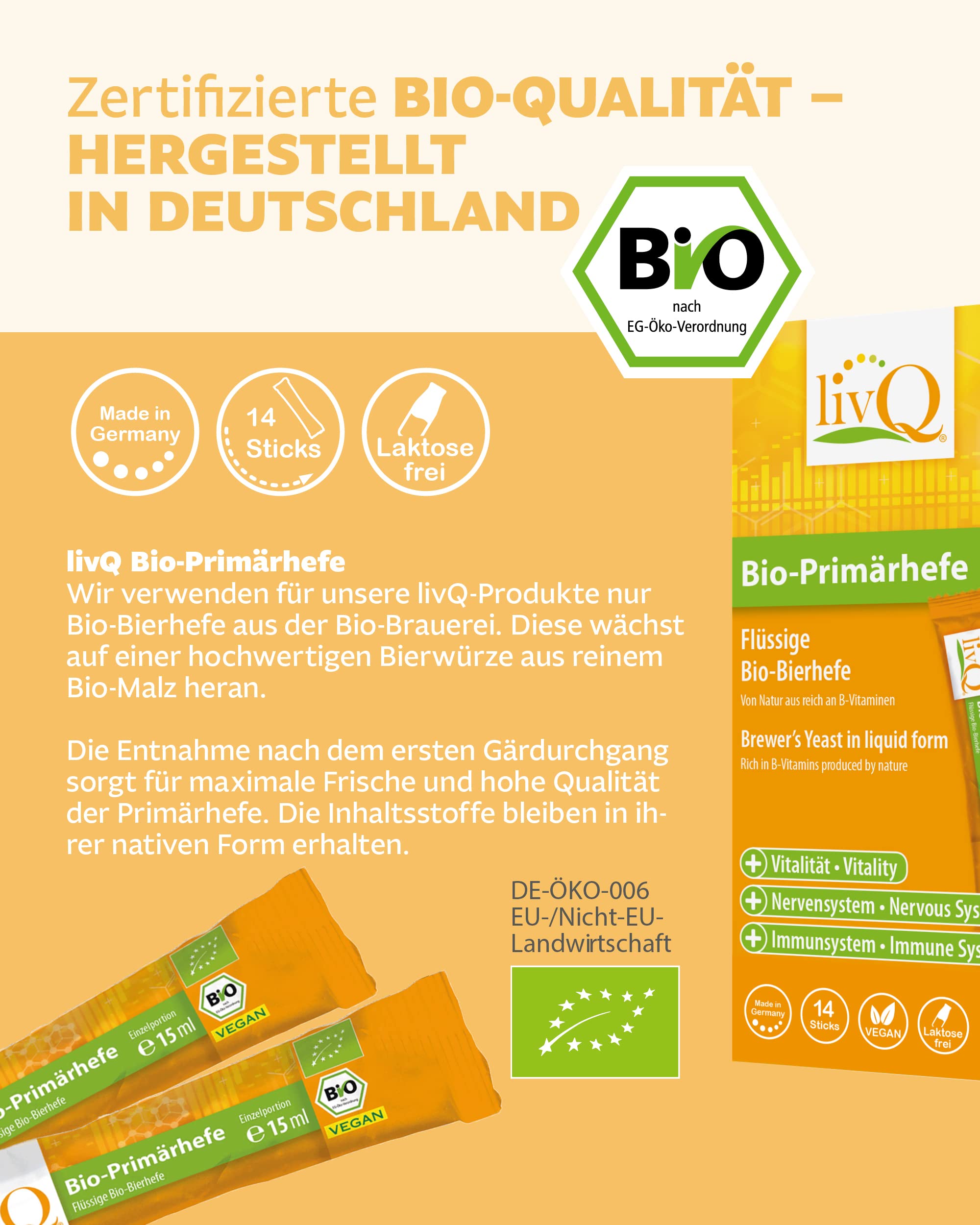 livQ Organic Primary Yeast Pure - Superfood Immune Booster Liquid, Organic Brewer's Yeast from Primary Fermentation with B Vitamins, Refreshing, Vegan & Lactose-Free | 210ml