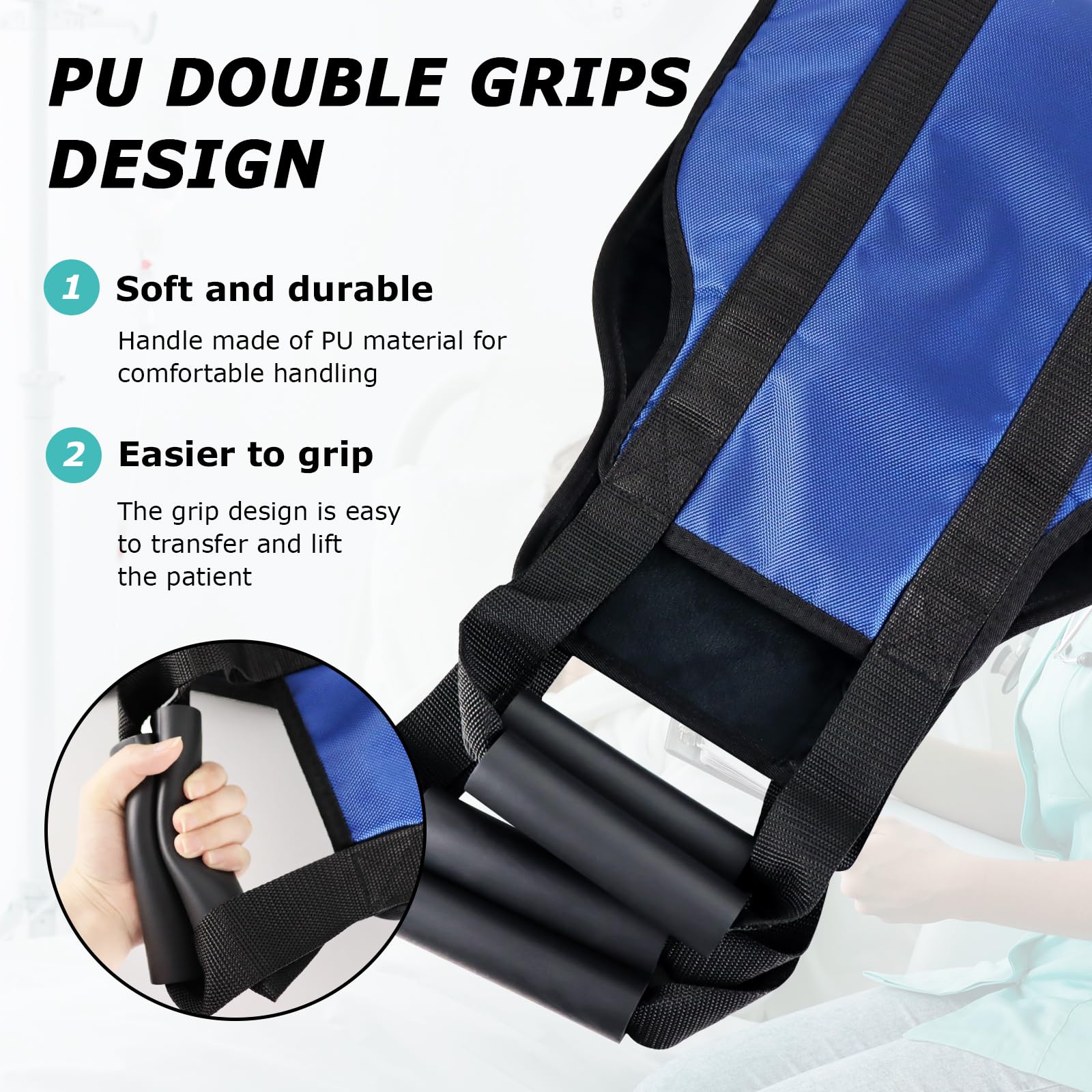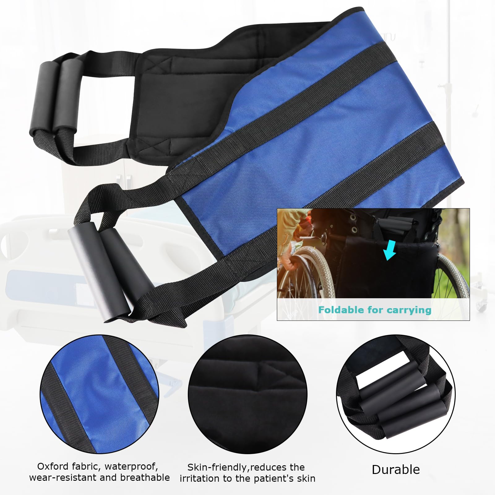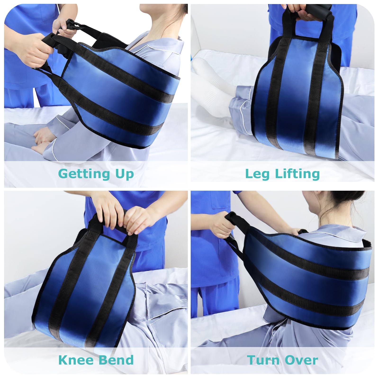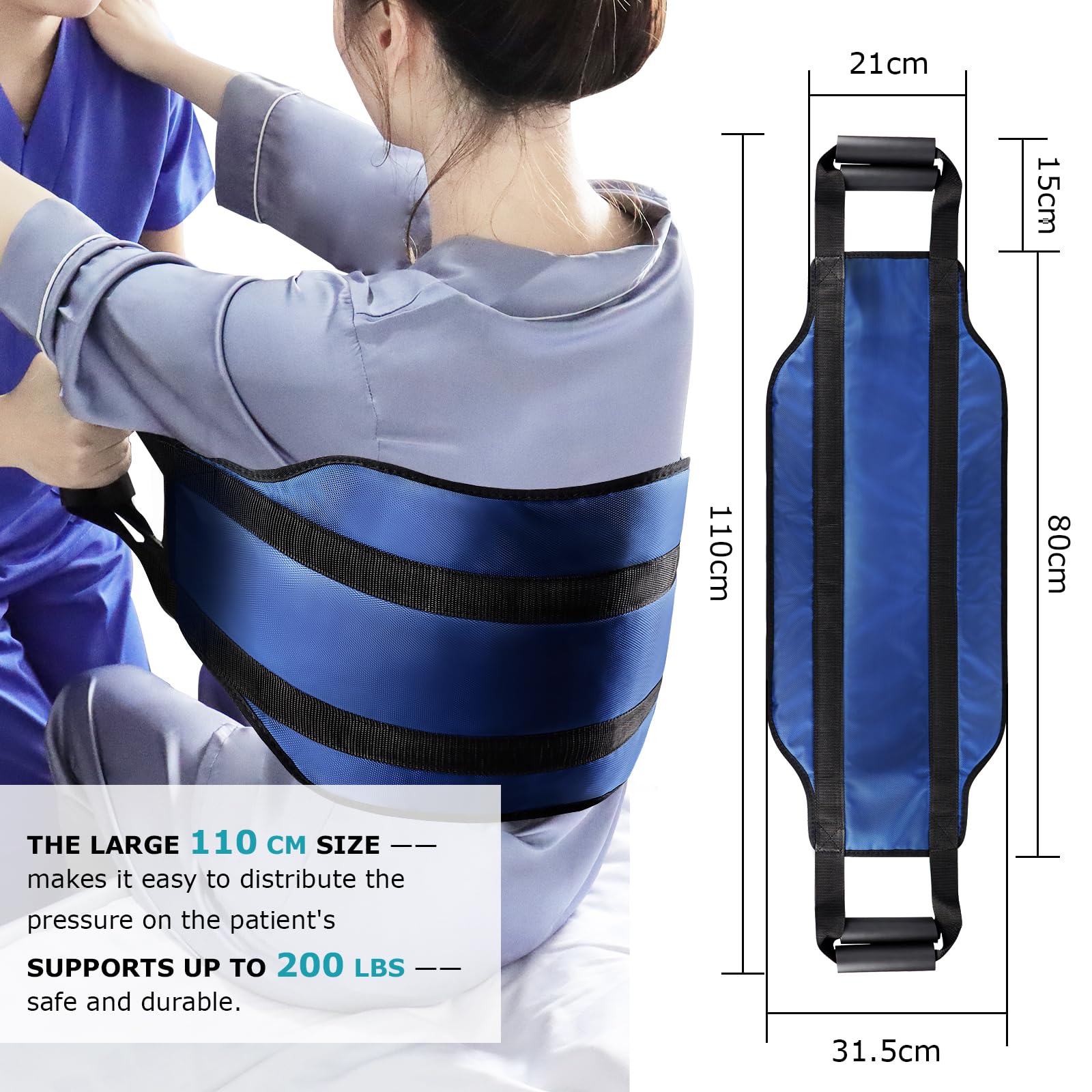 LOSCHEN 110cm Transfer Belt, Transfer Patient Belt, Bed Transfer Sheet for Disabled, Elderly, Geriatric, Injured, Safe Transfer from Car, Wheelchair, Bed (Blue, Extra Wide)