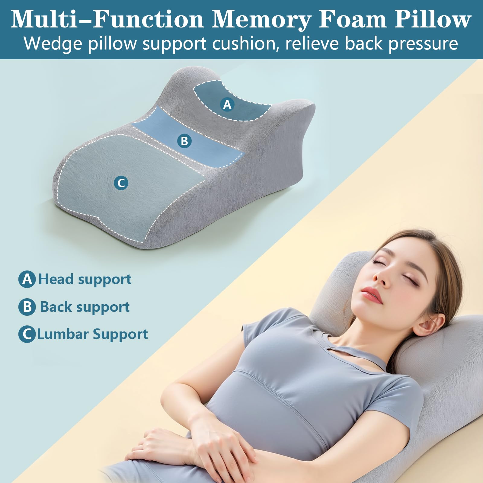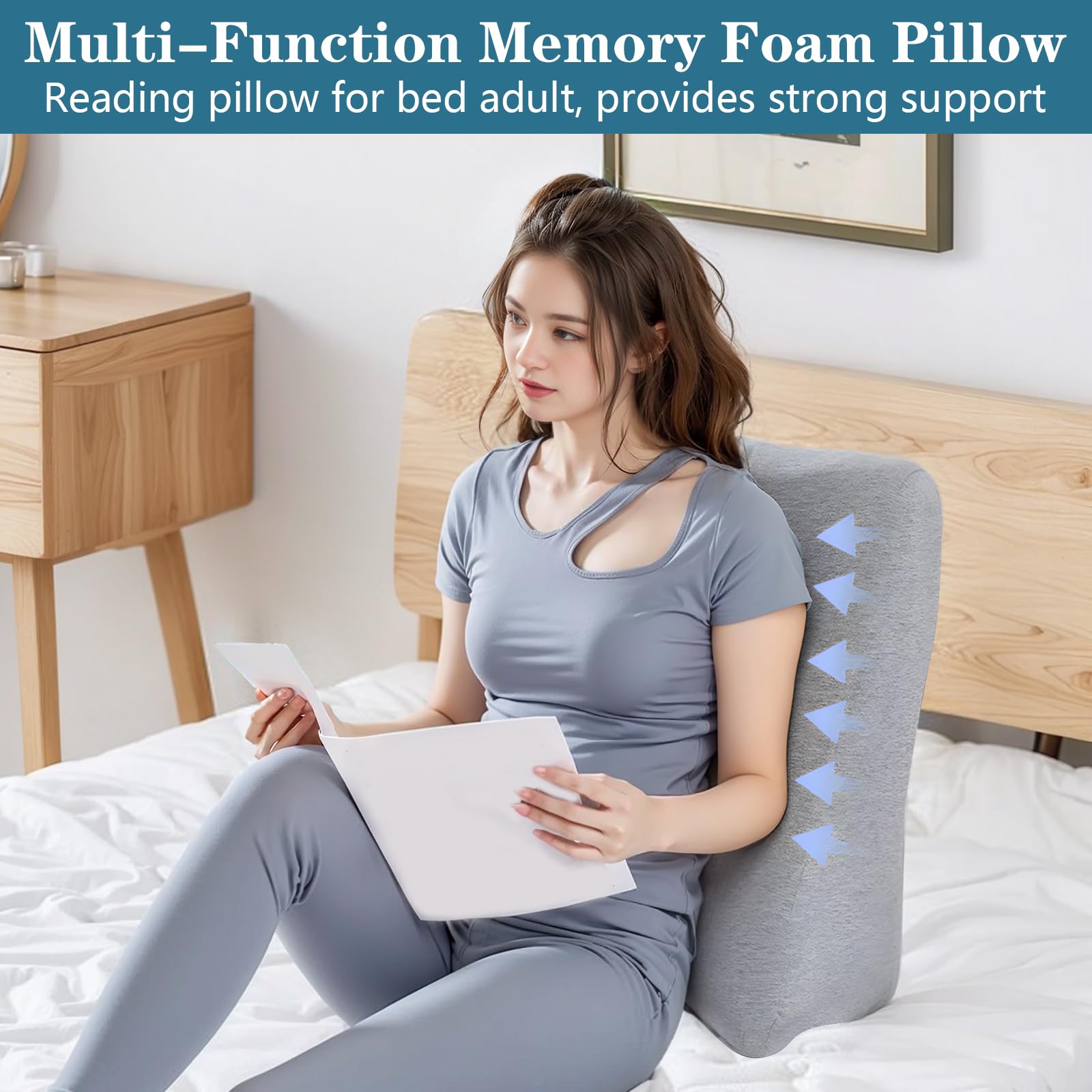 LPQKCcY Multifunctional Reading Pillow for Bed, Wedge Pillow Back Cushion for Bed, Memory Foam Ergonomic Mattress Wedge, Back Support Pillow, Leg Pillow, for Couch and Sofa