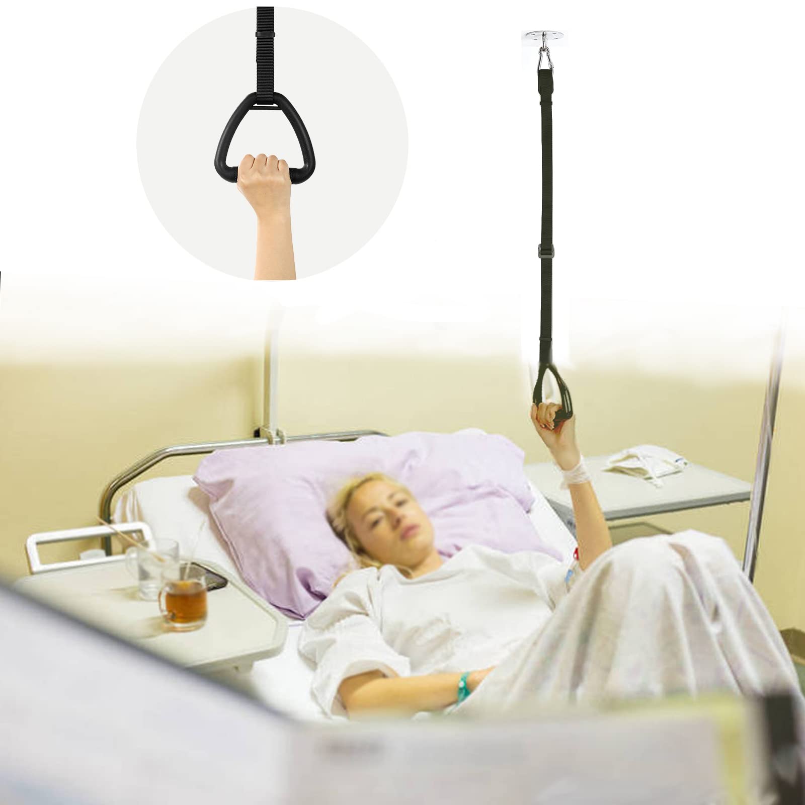 lqwidyf Bed Trapeze for the Elderly, Step Ladder, Bed, Helps Pull-Up Handles for the Disabled, Ceiling Mounted Trapeze for Bed Mobility Transfer, Suitable for Hospital, Bedroom, Bed, Mobile