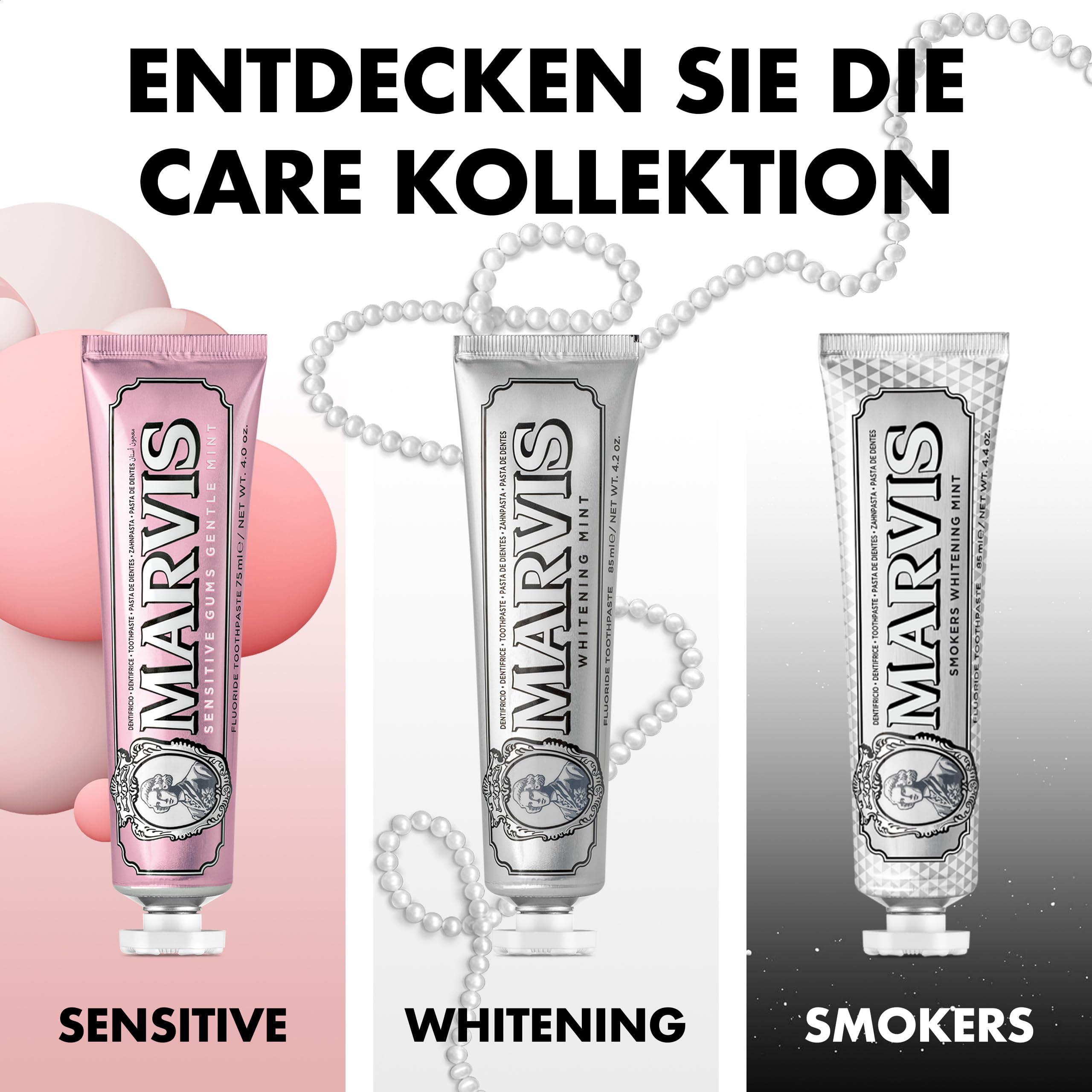 - Healthy gums – Marvis toothpastes not only taste fantastic, but also offer comprehensive care for teeth and gums – a good choice to prevent cavities
