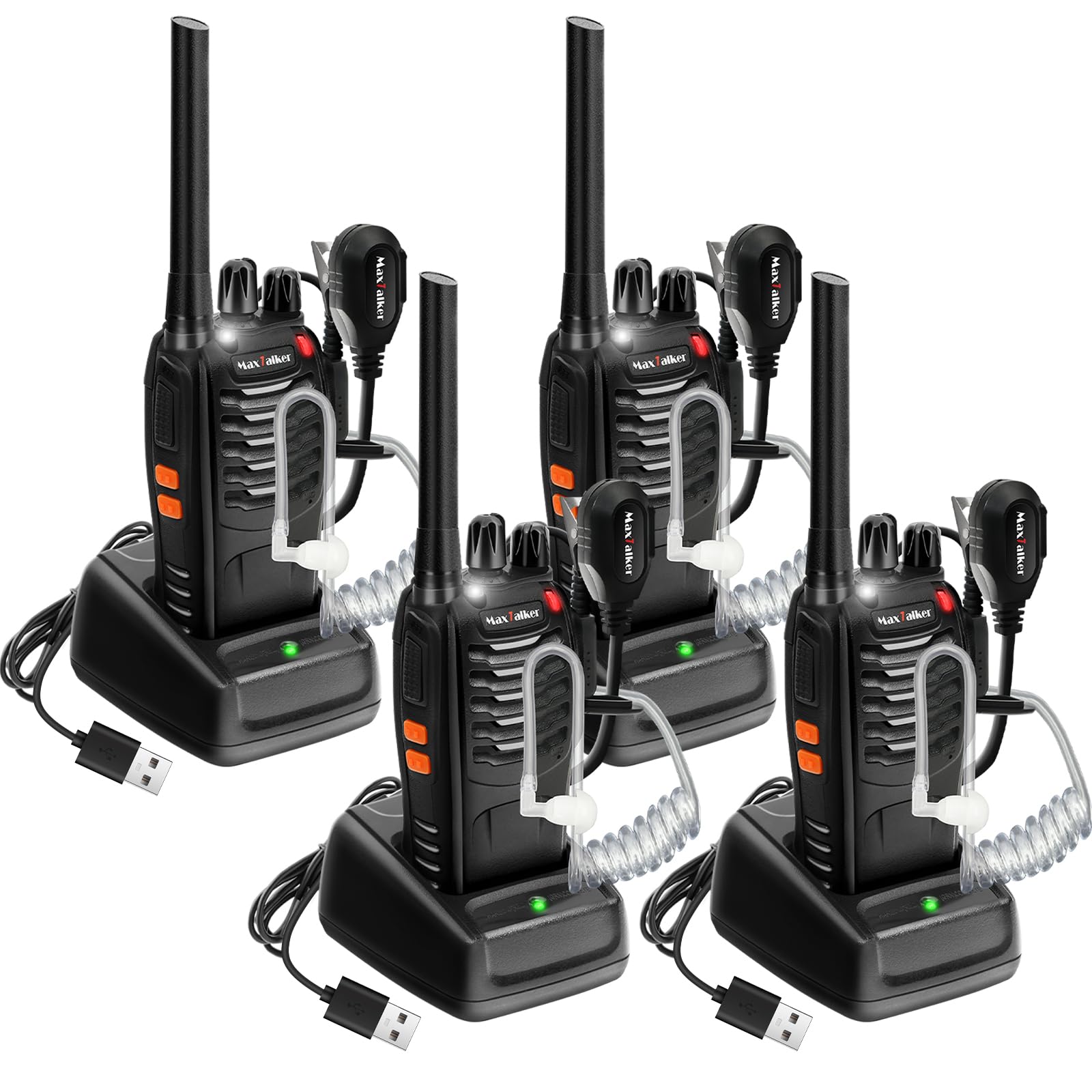 MaxTalker MT-8S Walkie Talkie Rechargeable for Adults and Children, License-Free PMR446 Radios, 16-Channel Radio Reception, with Headset and 1500mAh Lithium-Ion Battery with Type-C Connector, Set of 4
