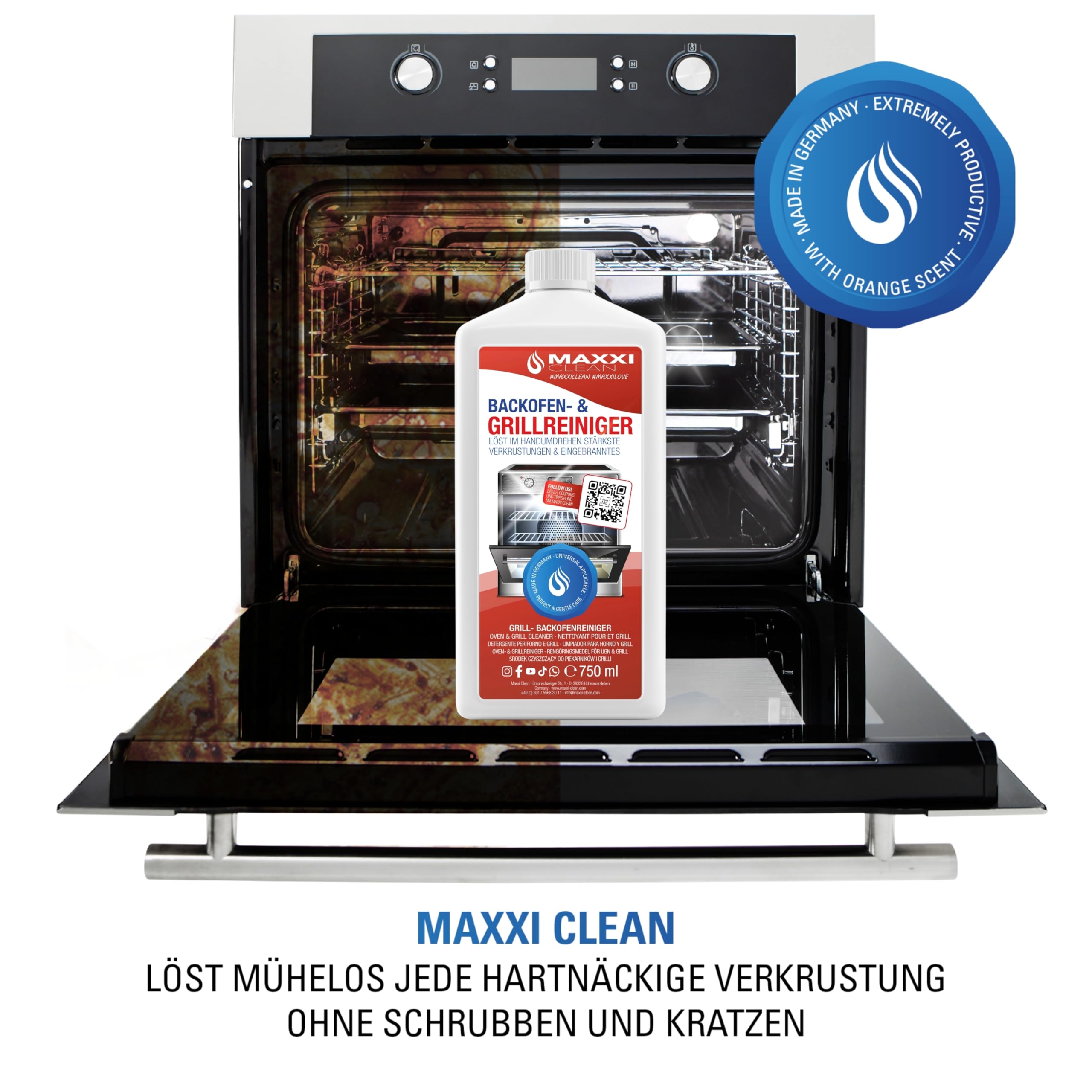 -  ✅ EASY-TO-USE – The oven cleaner removes even the most stubborn dirt in just a few minutes without scrubbing or scratching. The optimized Maxxi Clean formula dissolves all grease and dirt residues in no time.