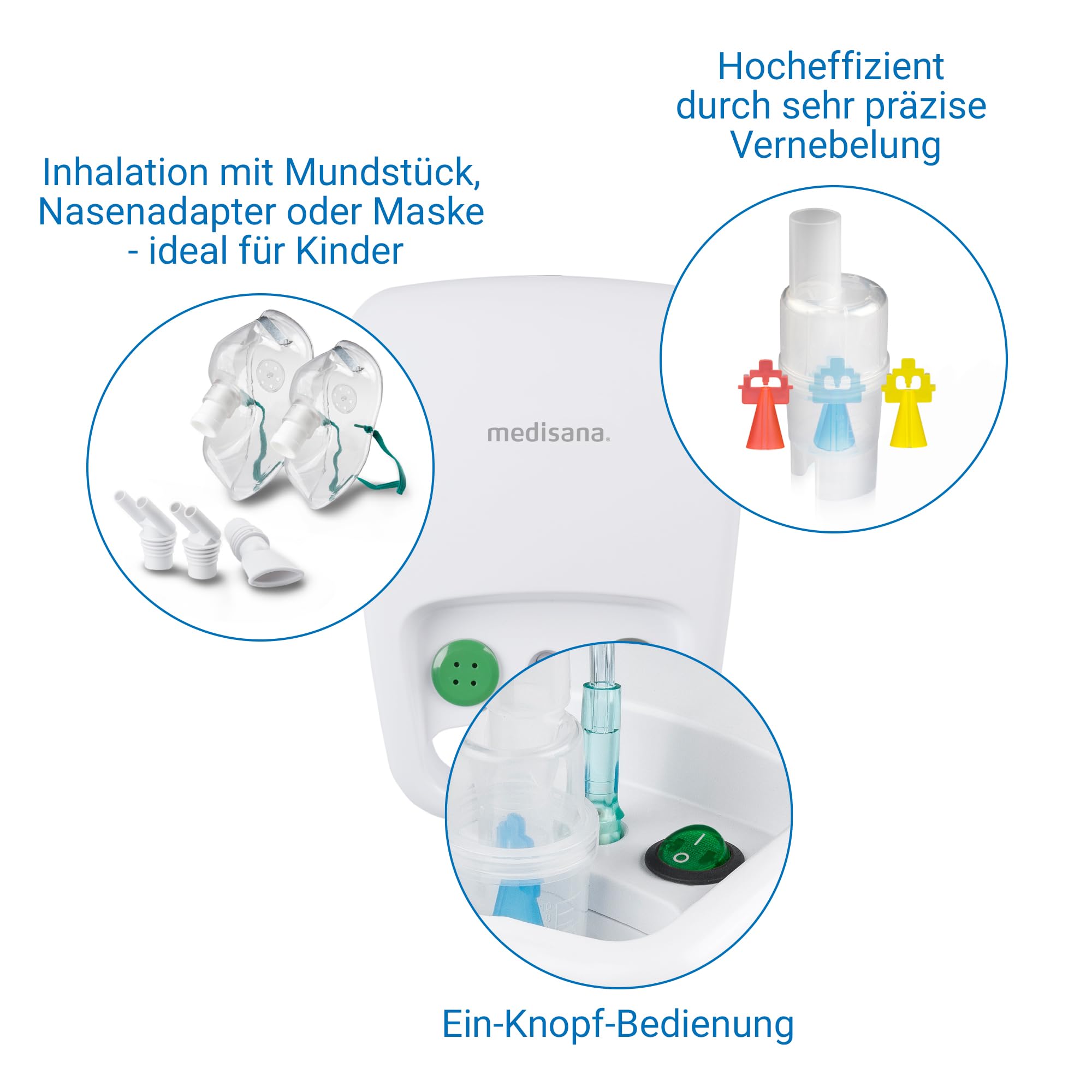 - High effectiveness: The inhaler nebulizes the active ingredients using modern compressor-compressed air technology. The finest nebulization ensures particularly high effectiveness.