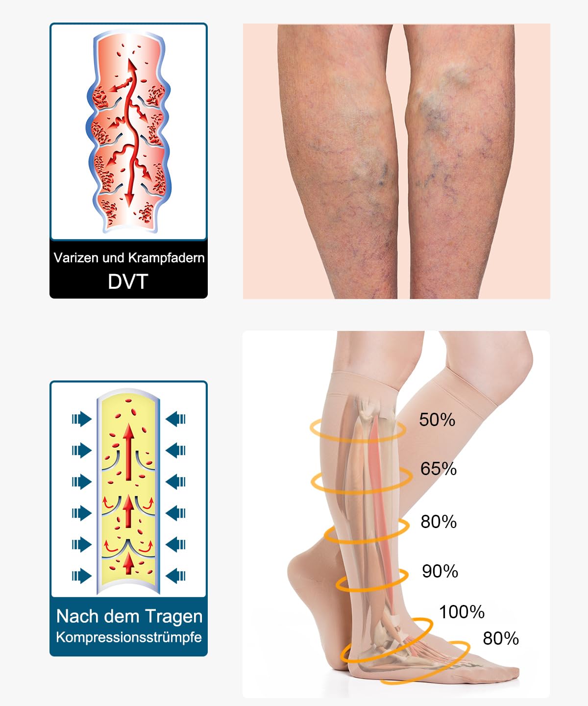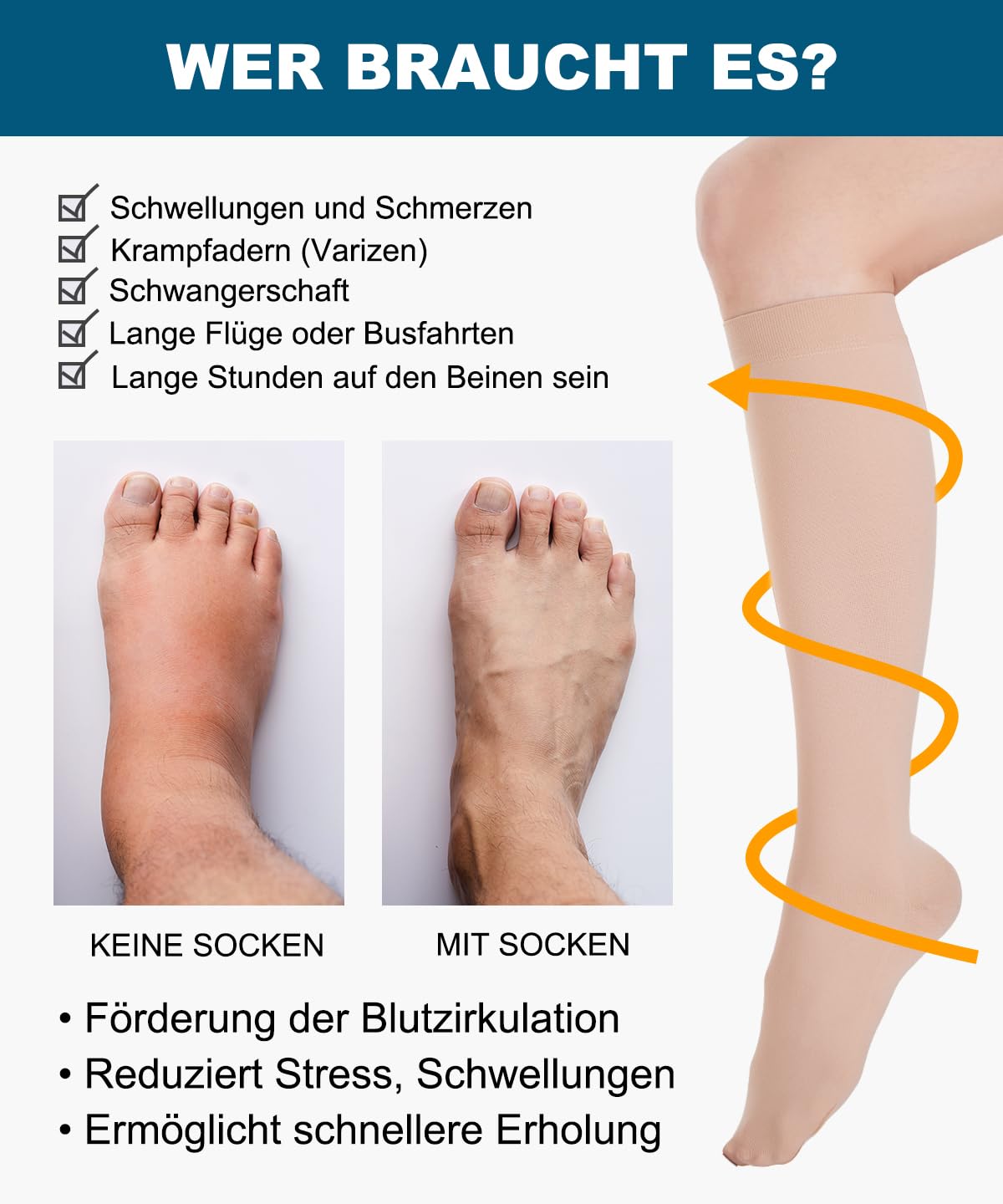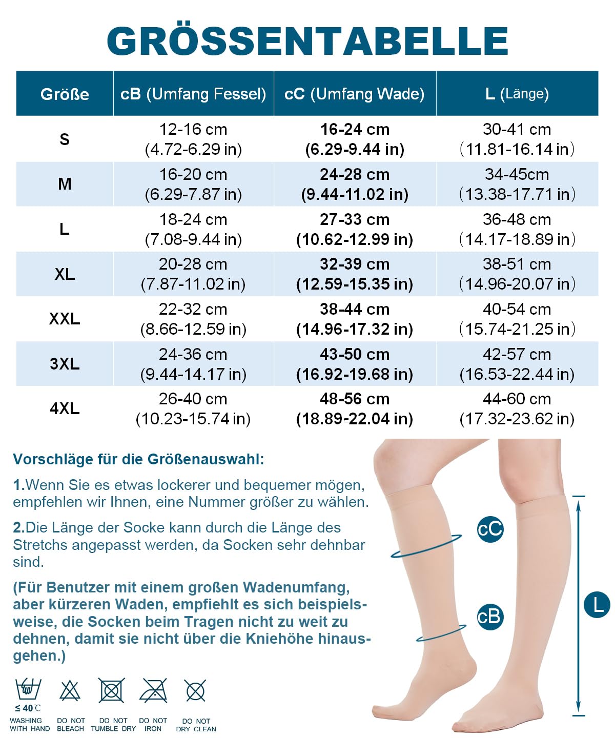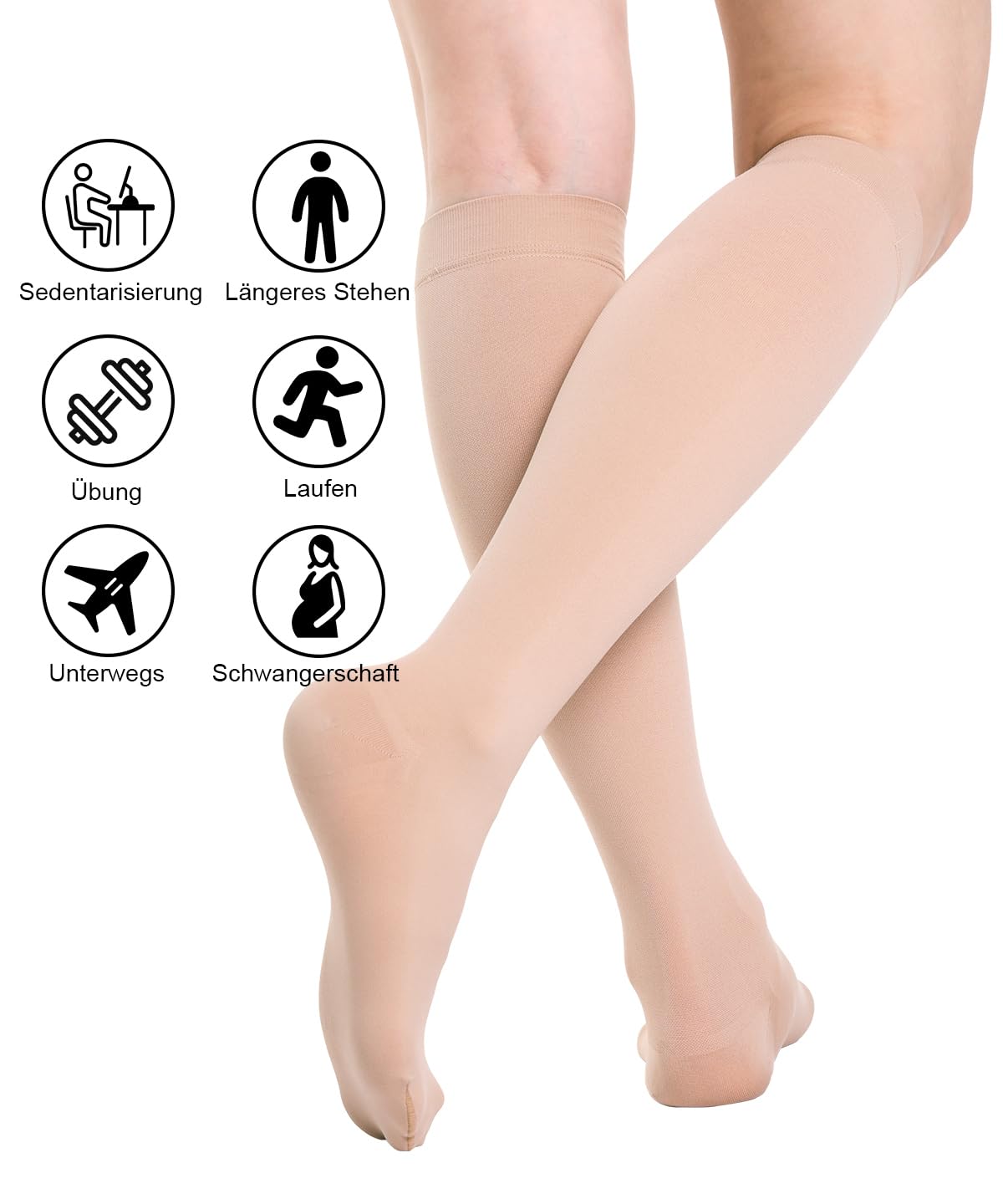 Medical compression stockings for women and men, 20-30 mmHg Class 2, sizes S-4XL, graduated support compression socks, support stockings for varicose veins, edema, and flight (beige, XXL)