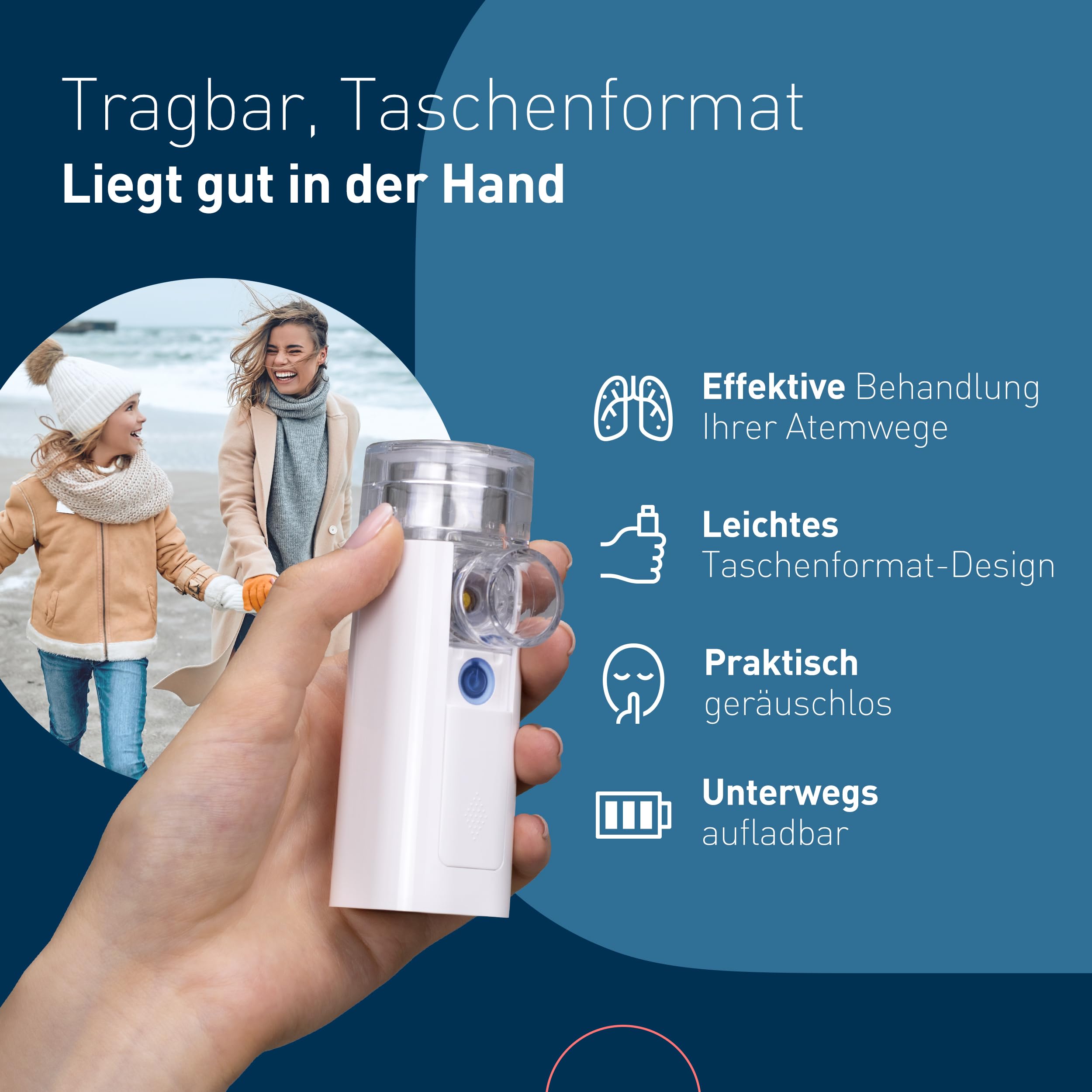 - Scope of delivery: Mini Air 360+ inhaler, mouthpiece, masks for children and adults, bag, instruction manual, micro USB charging cable
