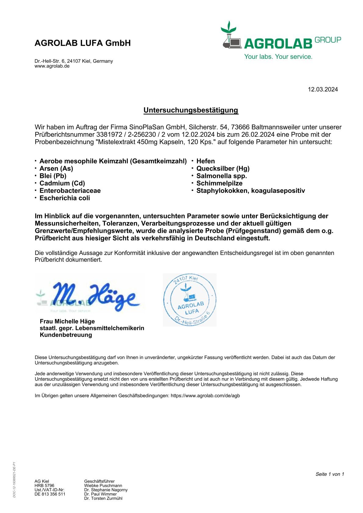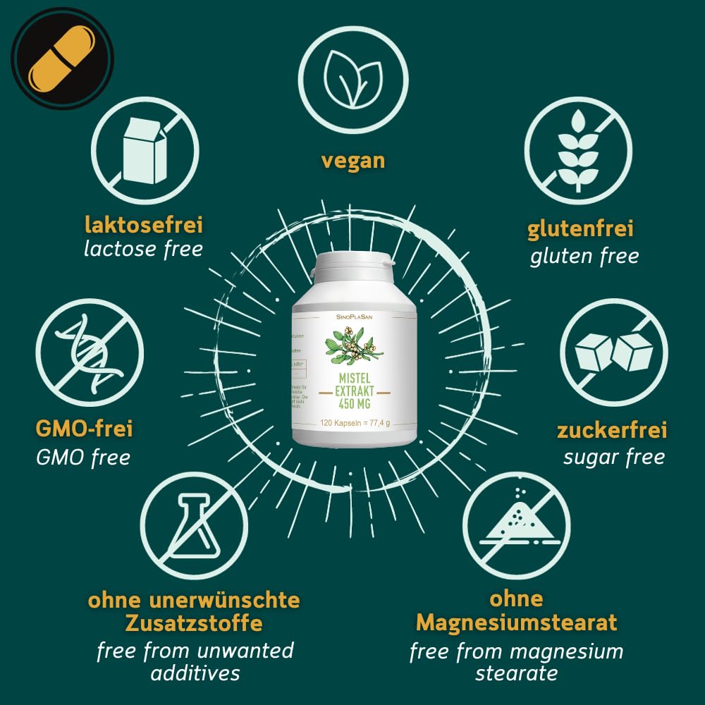 -  Mistletoe Extract 450 mg Capsules – Highly dosed and made from mistletoe extract, the ingredients are therefore present in a significantly more concentrated form. Suitable for vegans and vegetarians.