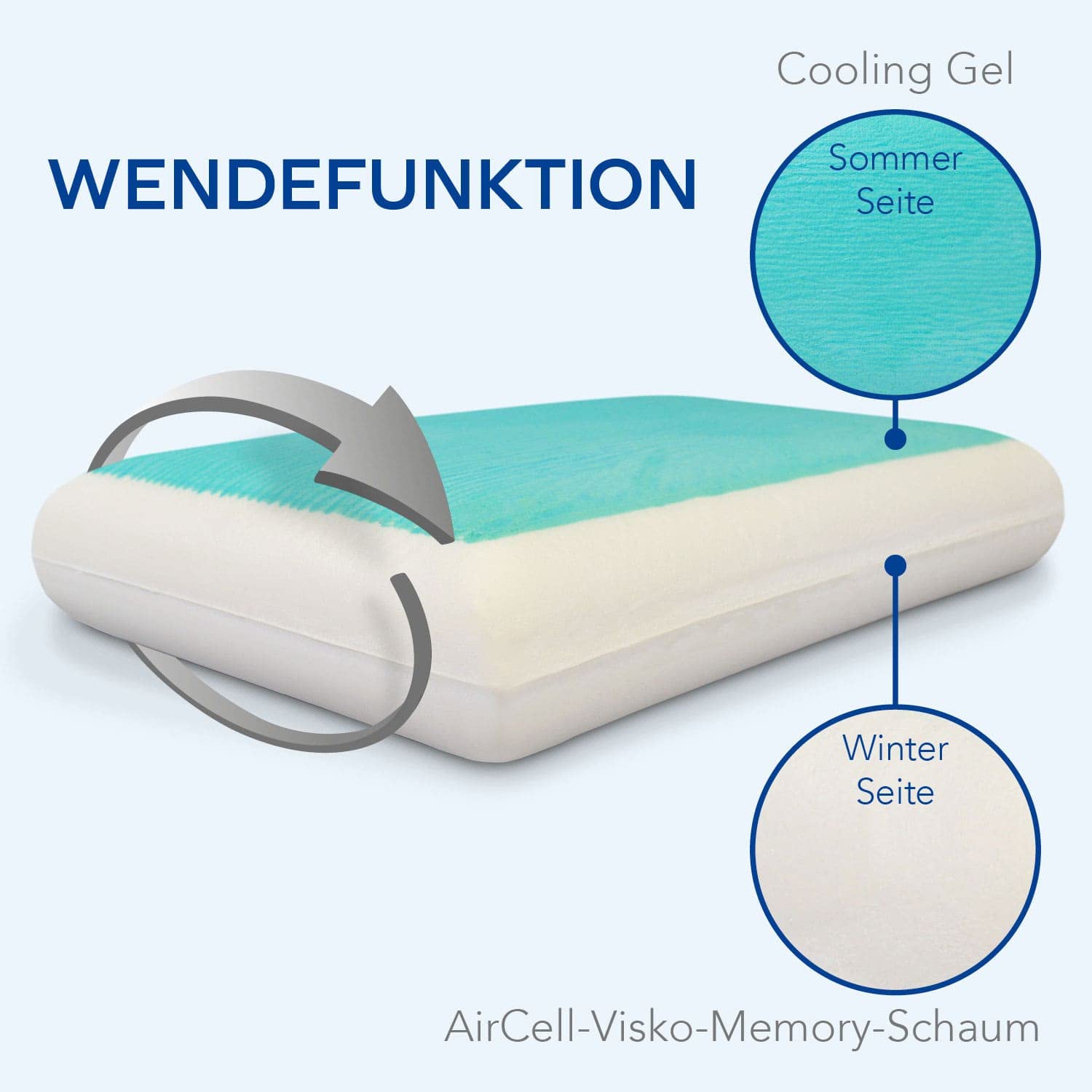 MLILY by Bestschlaf Neck Support Pillow Cooling Gel, made of visco-mineral foam, breathable pillow, with reversible function and washable pillowcase