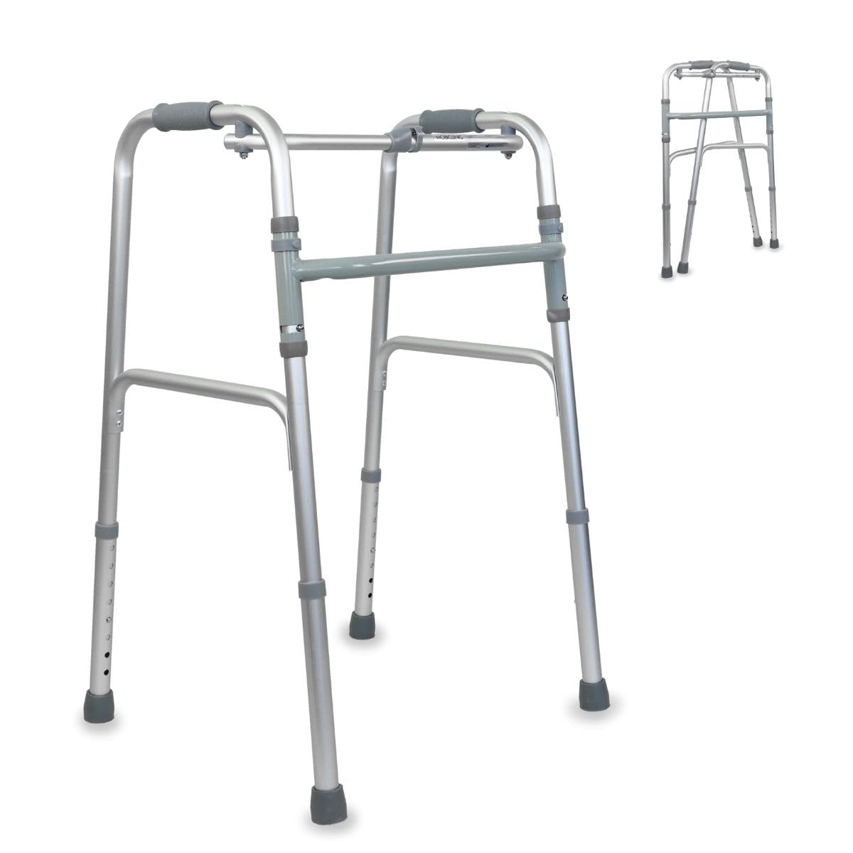 - ✔️ SAFE AND PRACTICAL: Thanks to the rubber feet, the walking frame won't slip when you're not moving it independently. The double structure allows it to support up to 100 kg.