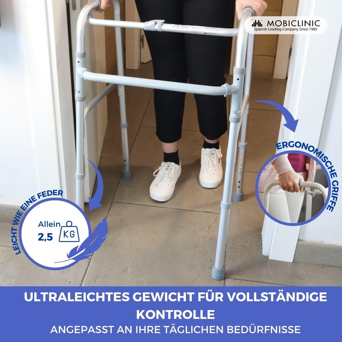 - ✔️ ADJUSTABLE AND FOLDABLE: The legs of the Columna walking frame are height-adjustable, making them easy to adapt to the user's needs. Furthermore, this walking frame folds with a single click, taking up minimal space during storage or transport.