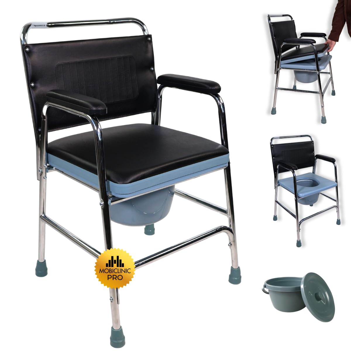 • ✔️MAXIMUM COMFORT: This toilet chair for seniors has a fixed padded backrest and a removable padded seat for maximum hygiene