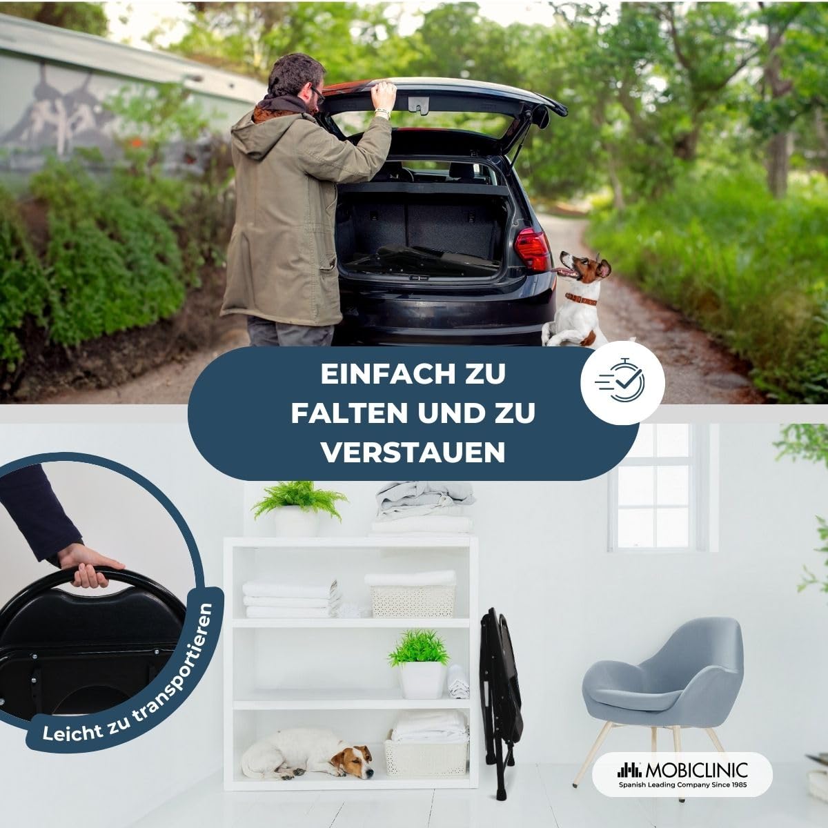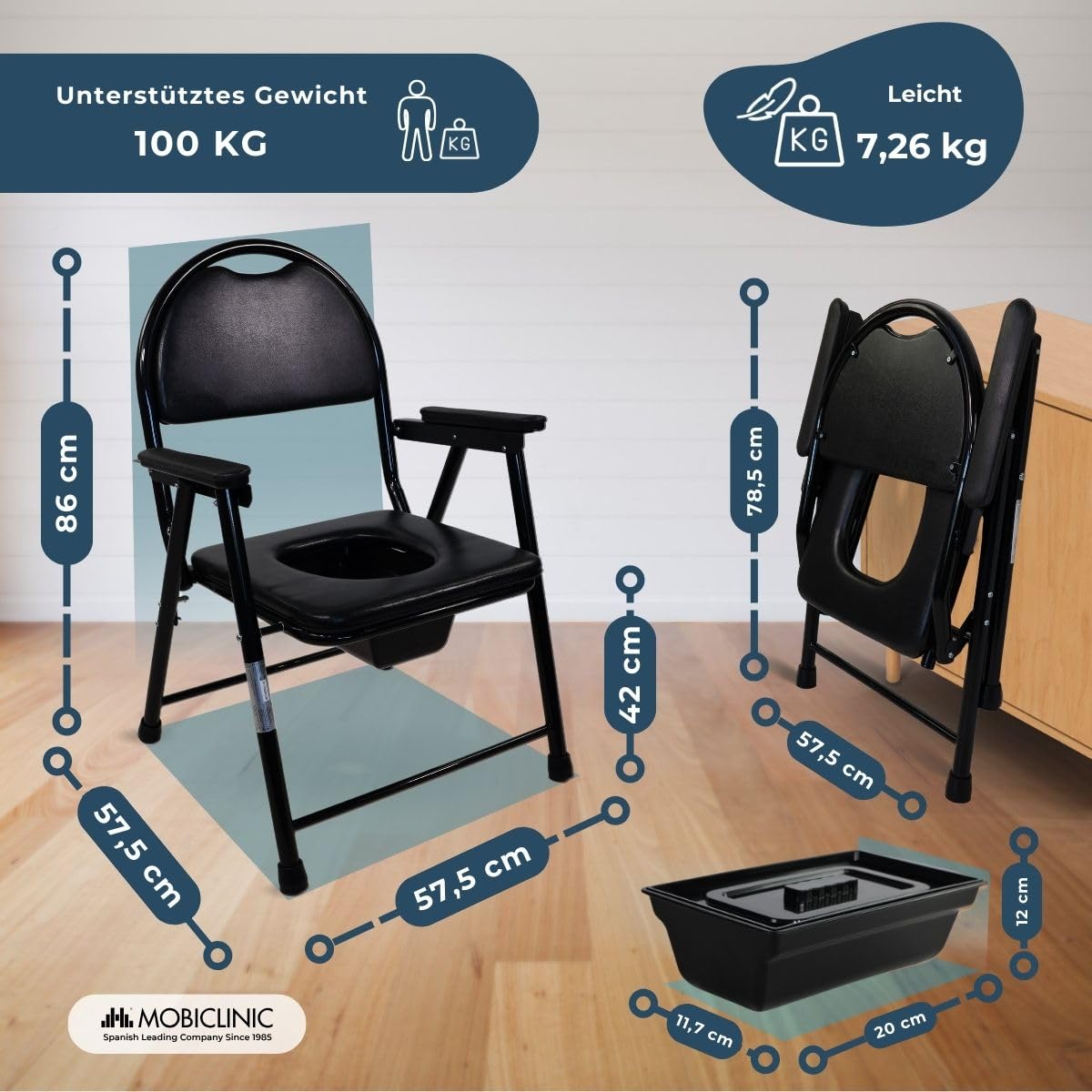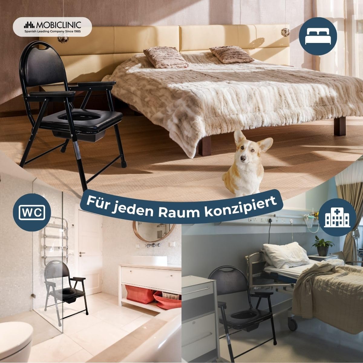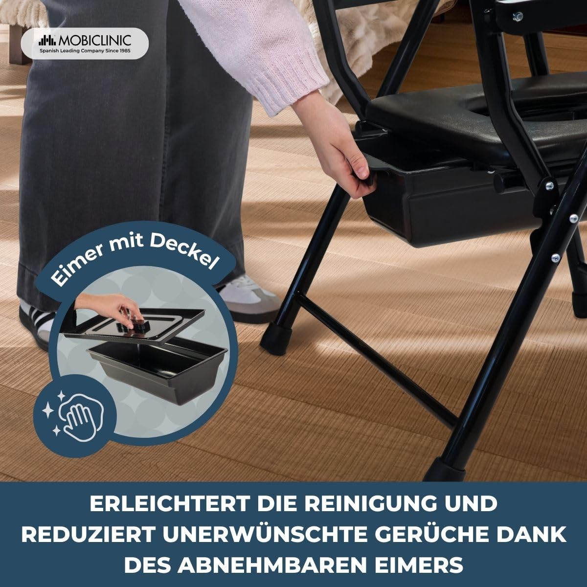 Mobiclinic, Commode Chair, Guadalquivir, European Brand, Toilet Seat for the Elderly and Disabled, Toilet Seat, Non-Slip, Foldable, Chrome-Plated Steel, Lightweight, Black