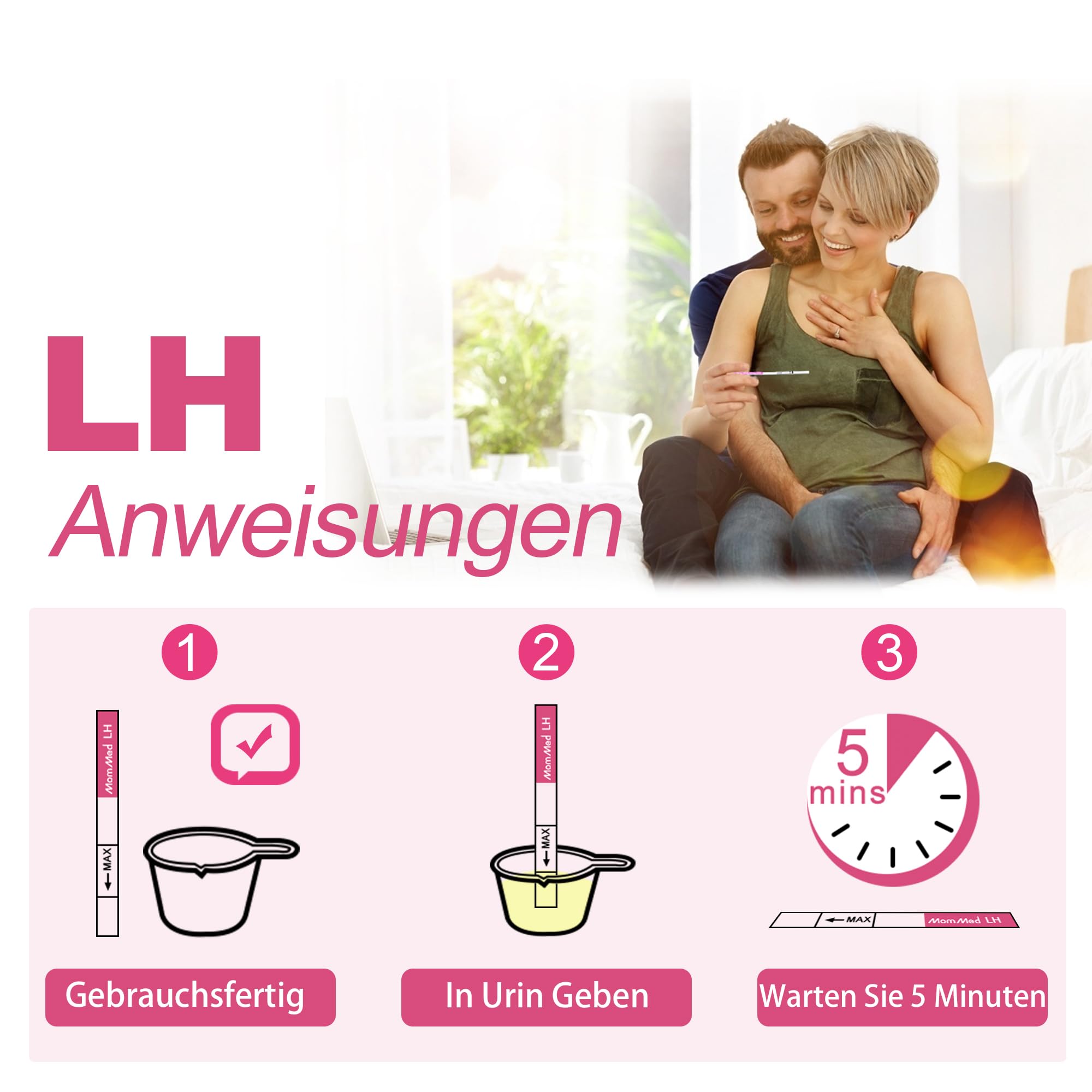 MOMMED Ovulation Test Strips, 60 practical ovulation test sticks with 60 urine cups - Fast fertility test for women - Ovulation test strips 25 mIU/ml