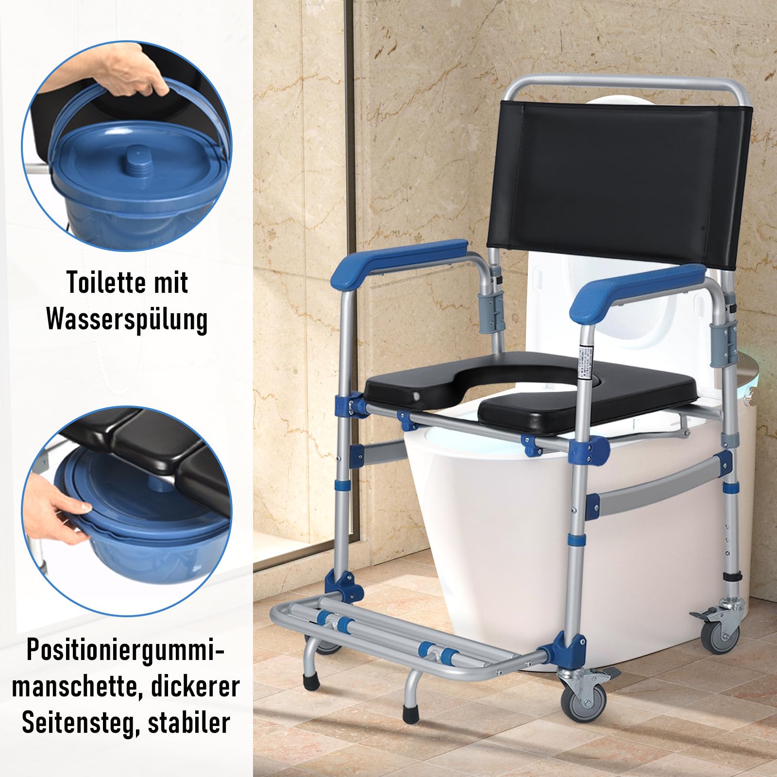 - Wide range of uses: It can be used as a chair, wheelchair, toilet chair and shower chair, which is convenient for the elderly, sick and pregnant women in bedrooms, bathrooms and outdoors
