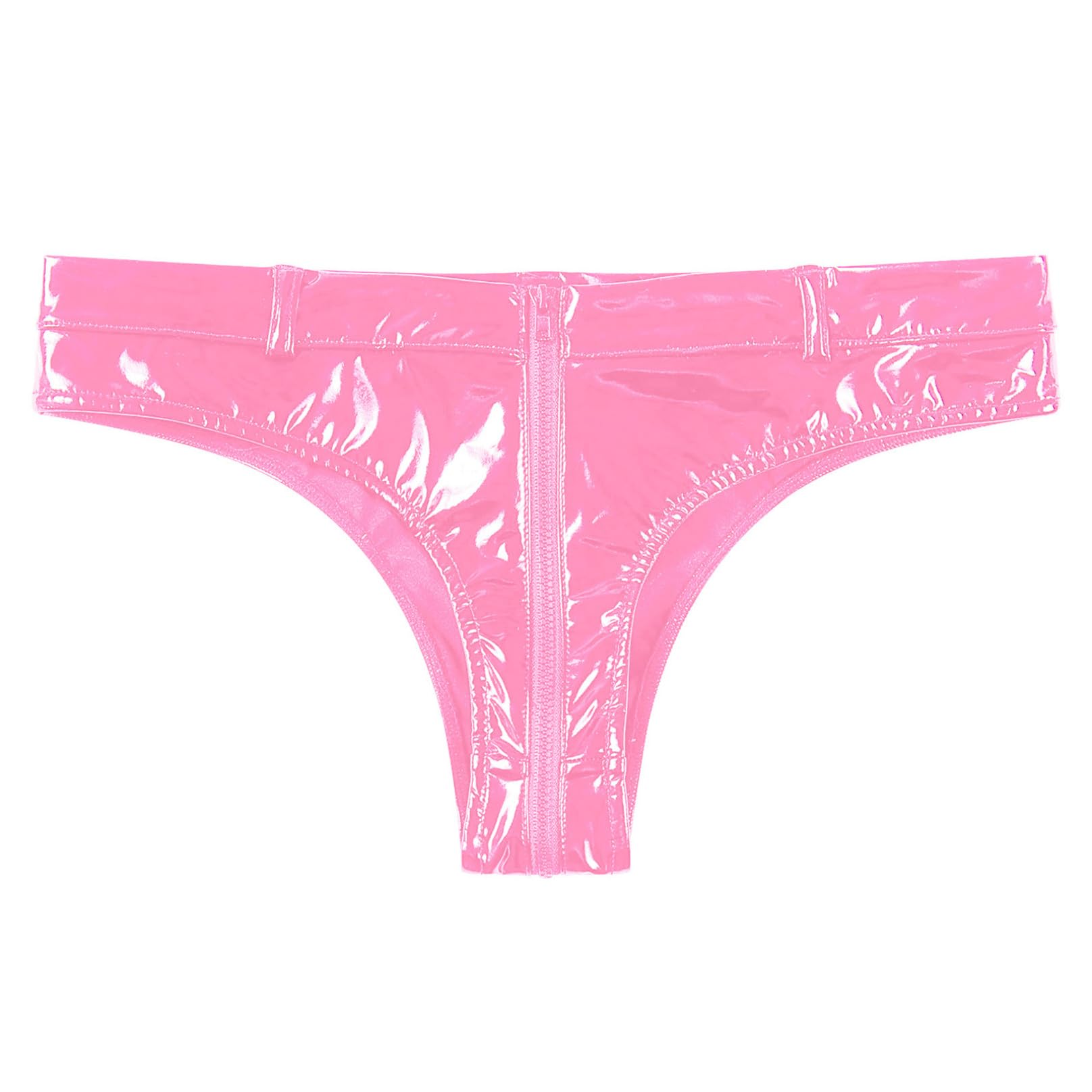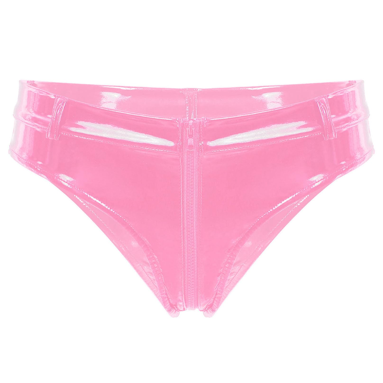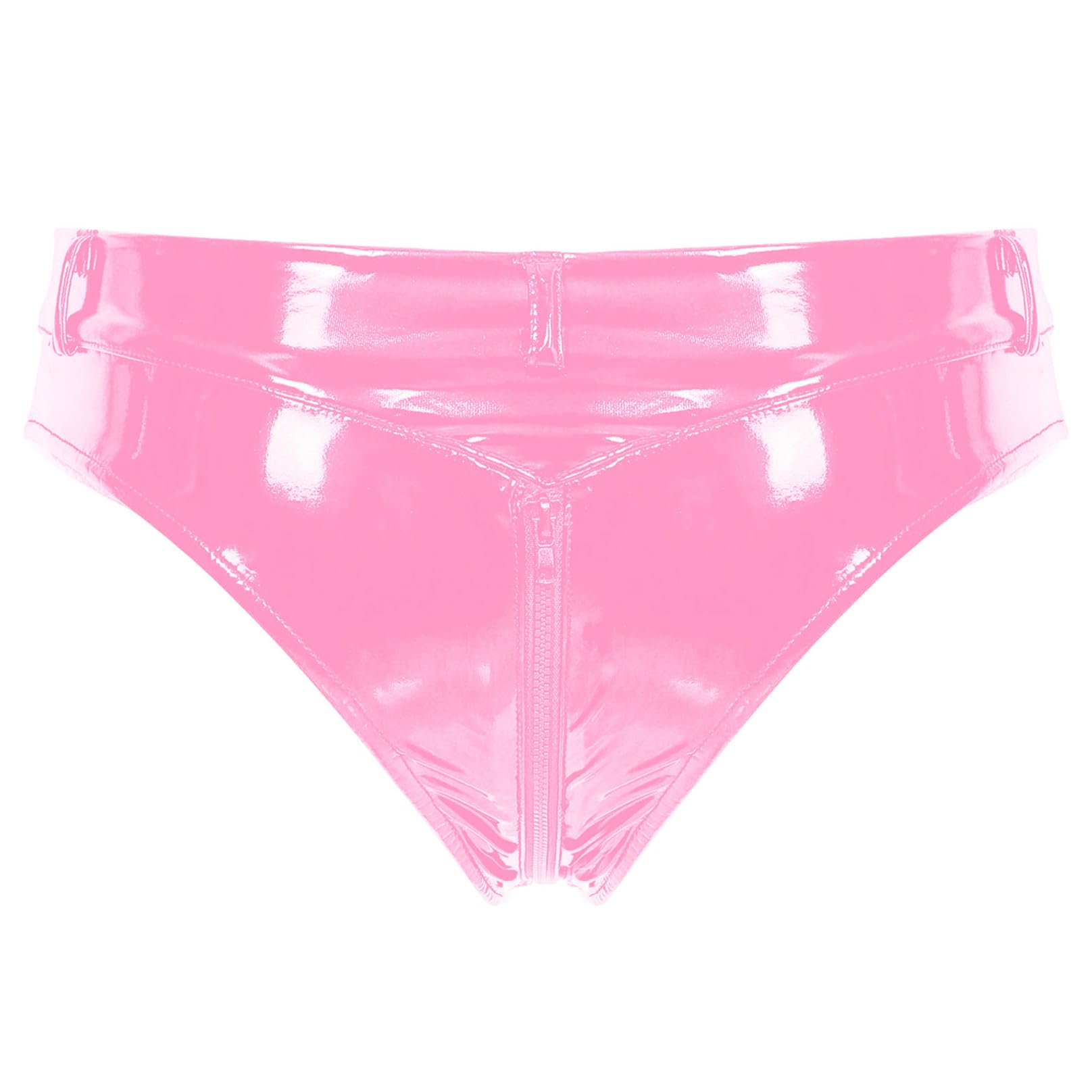 MSemis women's wetlook string thong open briefs hot pants patent leather shorts underwear erotic lingerie gogo panties sexy lingerie with zipper pink CL