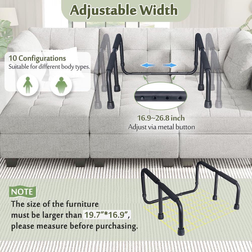 - 【Adjustable Width】The couch stick offers 10 width settings, easily adjustable from 16 to 25 inches with metal knobs. Its flexible design adapts to different body types, providing more comfort and support.