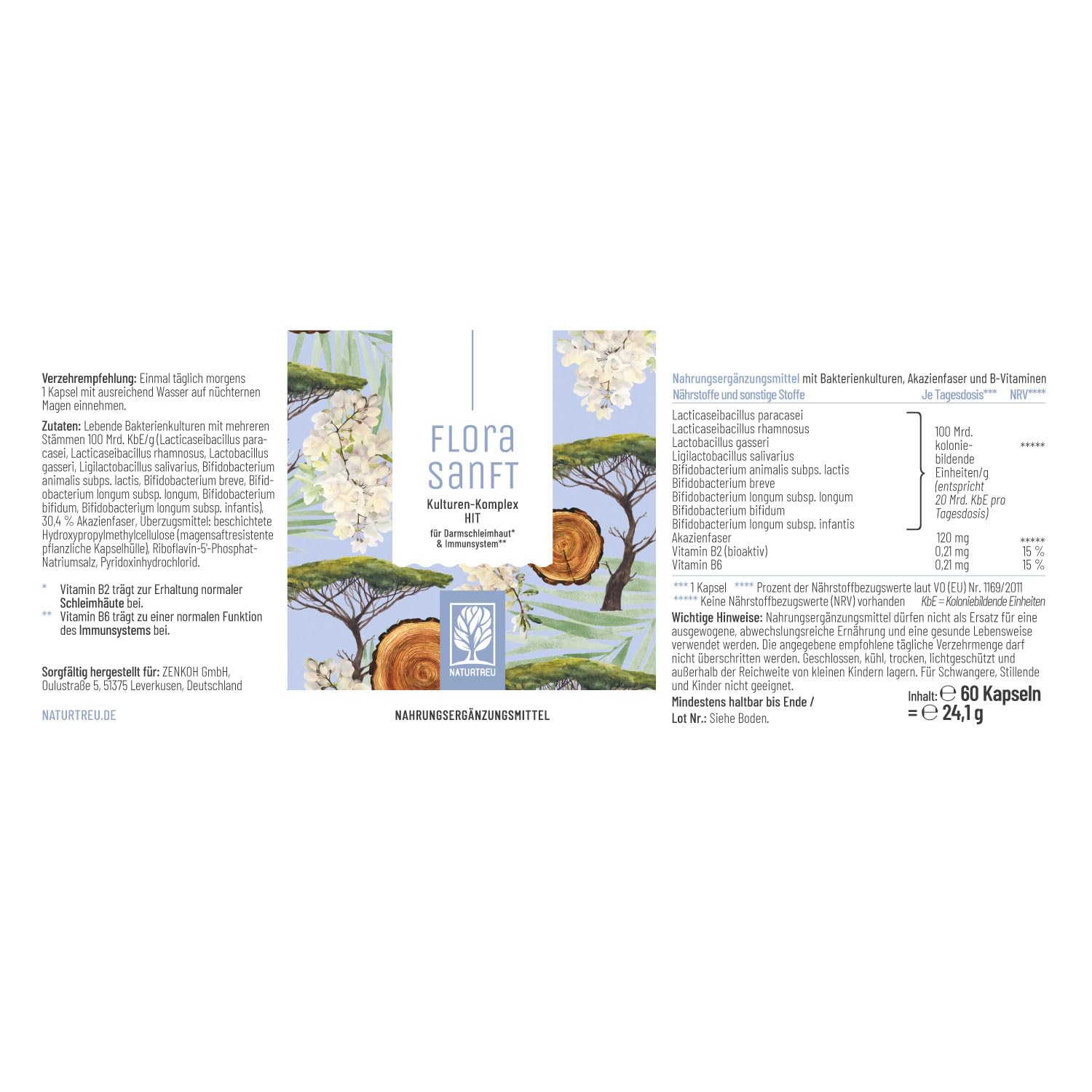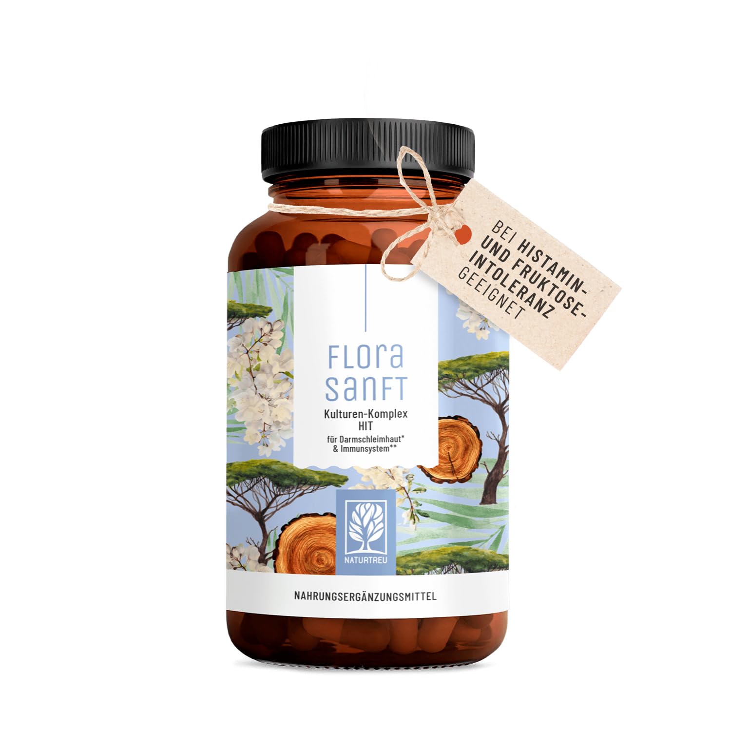 NATURTREU culture complex HIT + FI with Lactobacillus & Bifidobacteria, also for histamine intolerance & fructose intolerance, 60 gastro-resistant capsules, supplemented with vitamin B2 and vitamin B6.