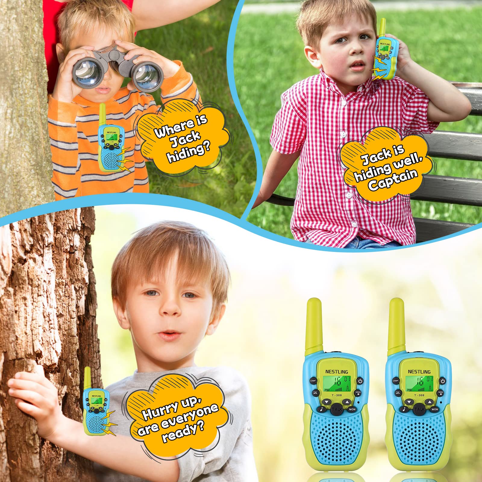 - ðŸ'¡ã€�Latest Technologyã€' The upgraded version of Nestling Walkie Talkies offers clearer voice and stable signals. Automatically mute background noise, and the VOX function helps transmit your voice without pressing a button.
