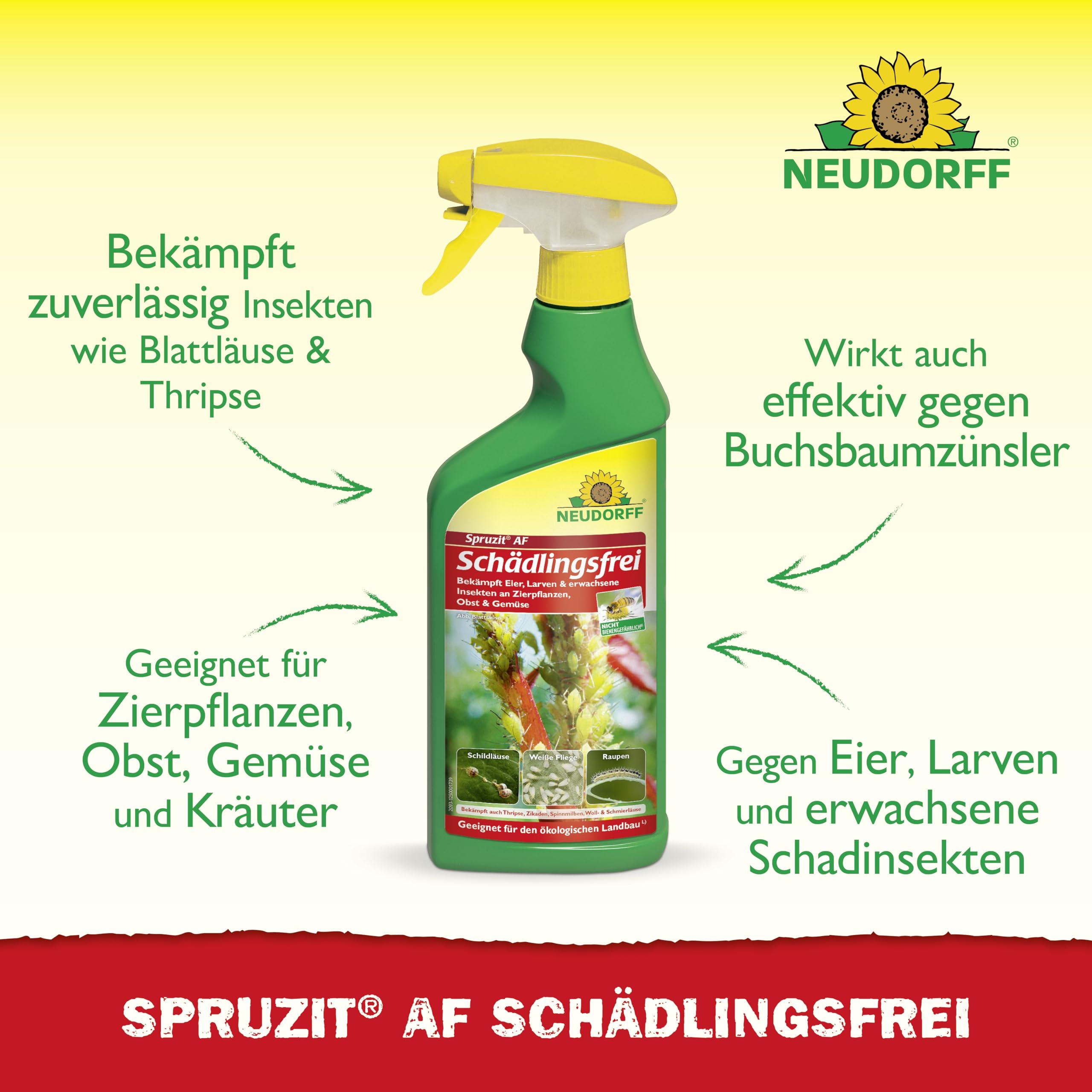 - Special combination of active ingredients: Contains natural pyrethrum and rapeseed oil, which work together to combat all developmental stages of insect pests – eggs, larvae and adult insects