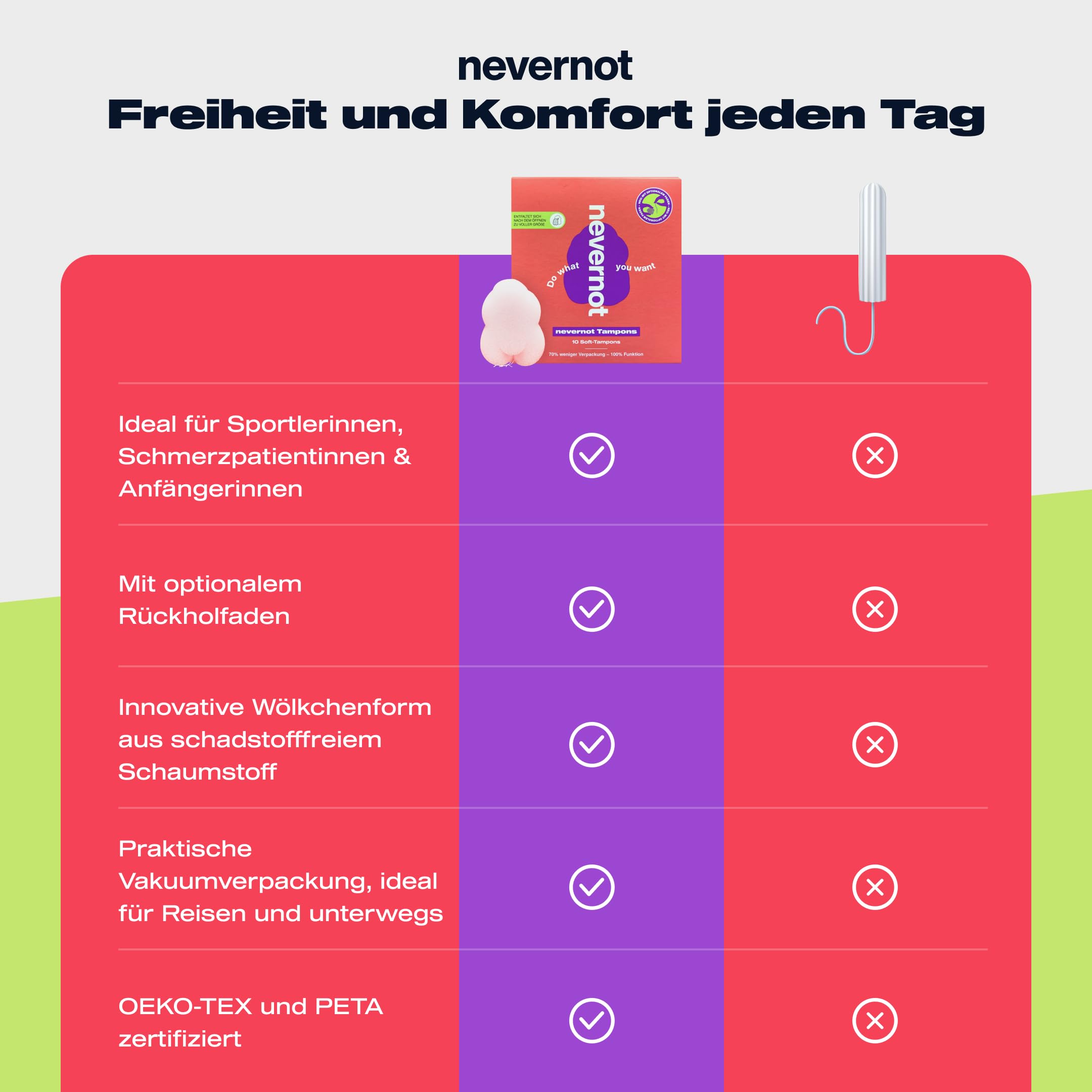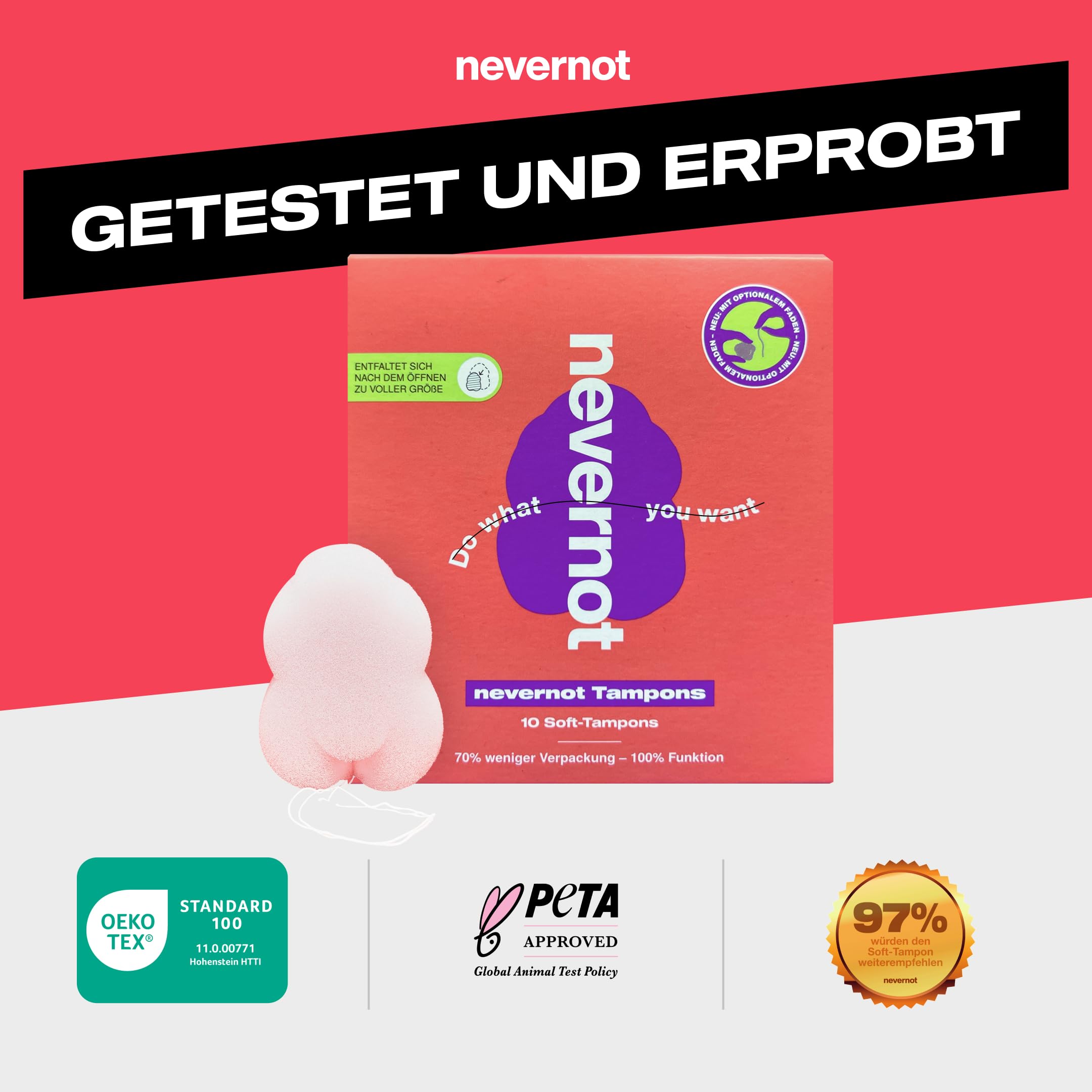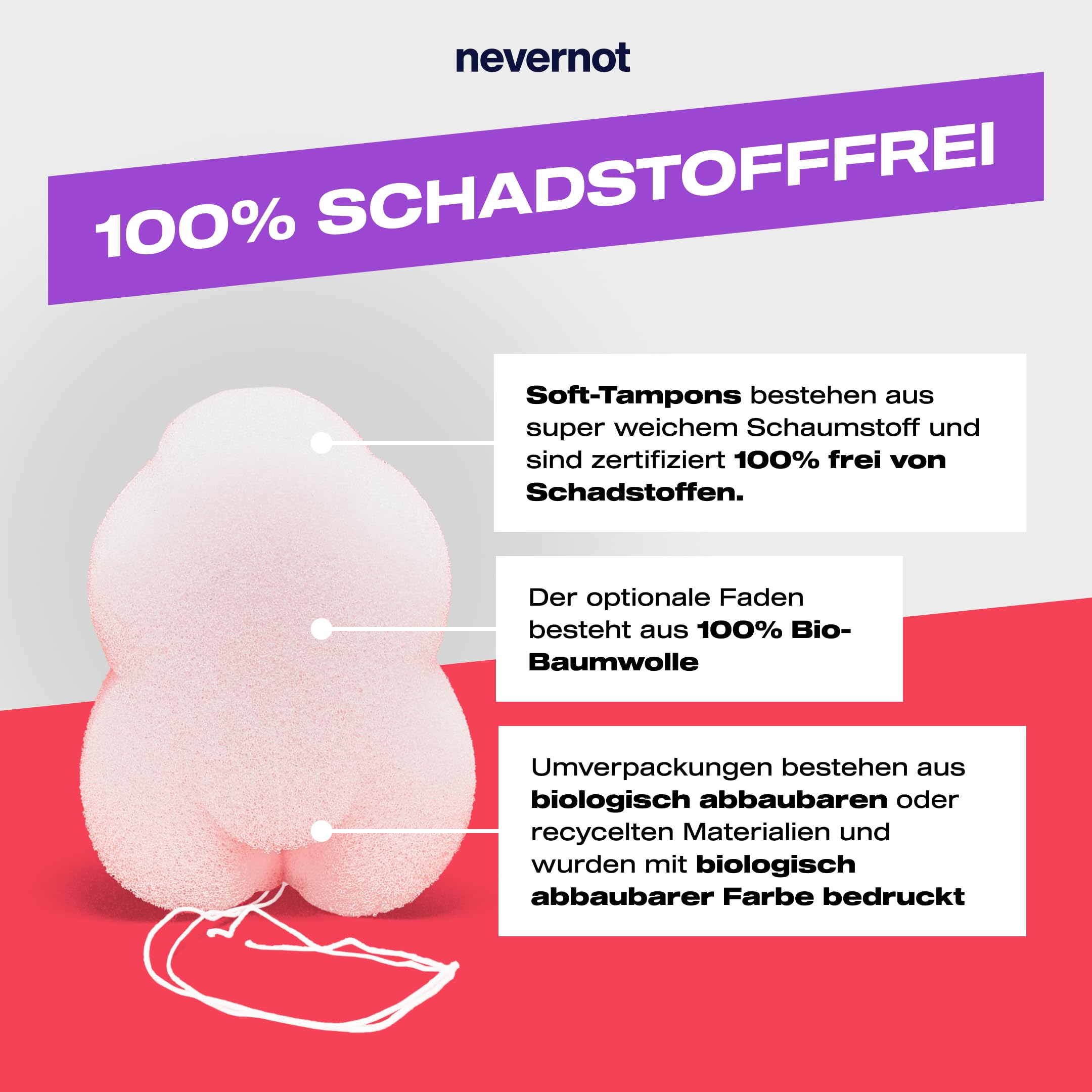 nevernot Soft Tampons, 48 Count: Menstrual Sponge with Optional Thread, 100% Non-Toxic, Super Soft Tampon, Easy to Remove, Ideal for Sports, Sauna & Pain Patients