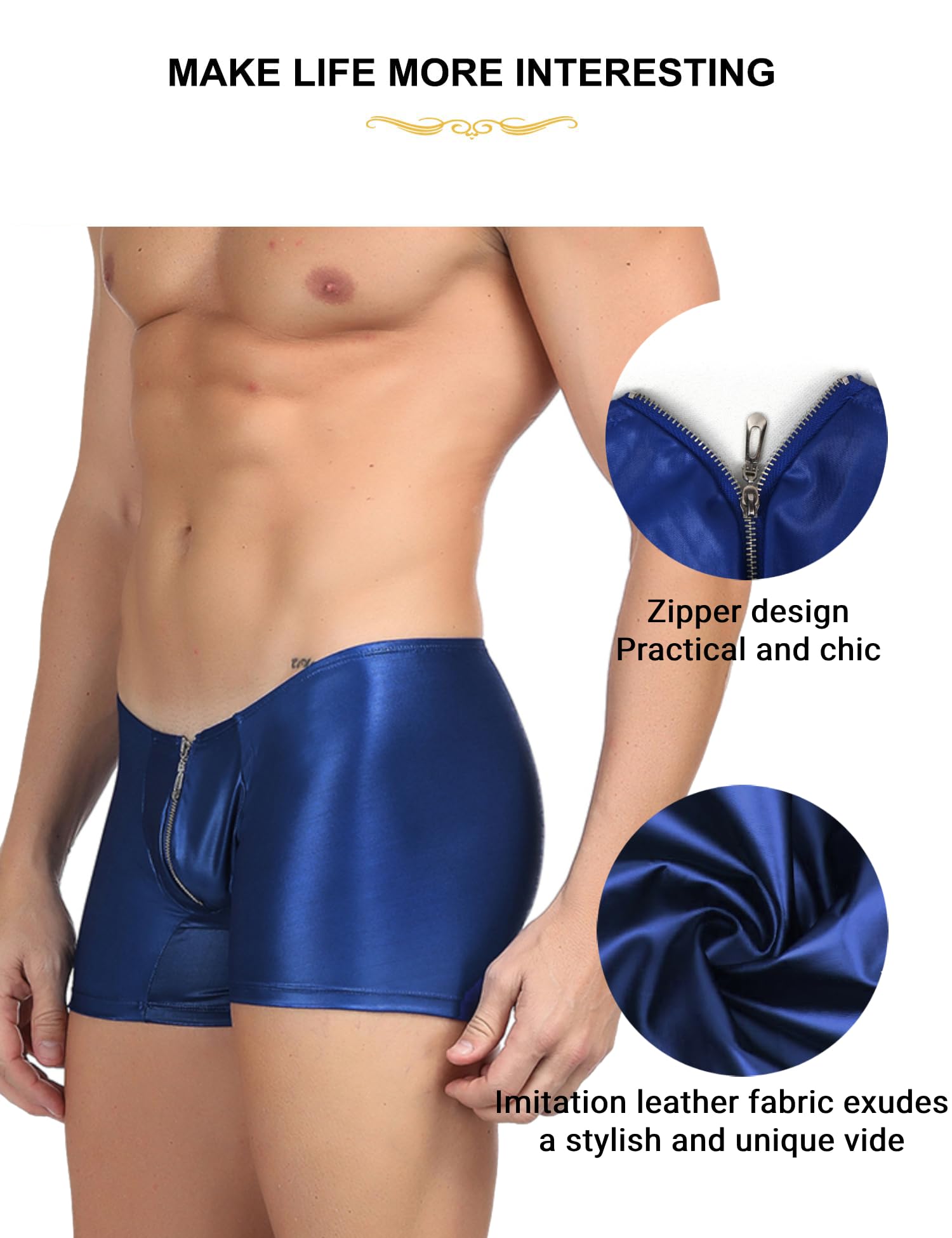 ohyeahlady Wetlook Men's Sexy Lingerie Erotic Briefs for Men Sissy Panties Gay Underwear Underpants Faux Leather Large Sizes Sexy Lingerie Underwear String Thong Leather Shorts Blue L