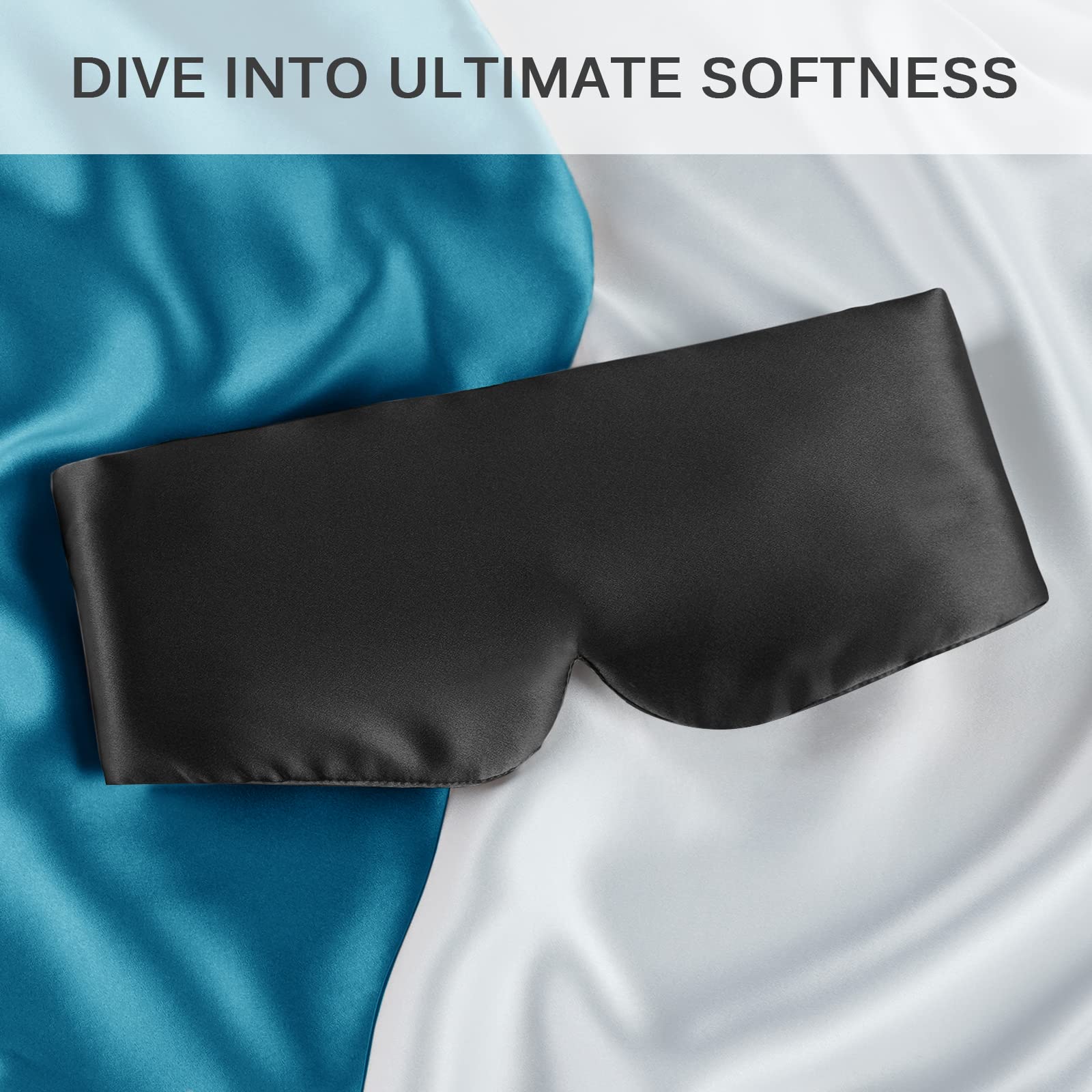 OLESILK 100% Mulberry Silk Sleep Mask Eye Mask with Adjustable Headband for Men and Women, Large Sleep Mask and Blindfold for Nighttime Sleep, Travel and Naps, Black