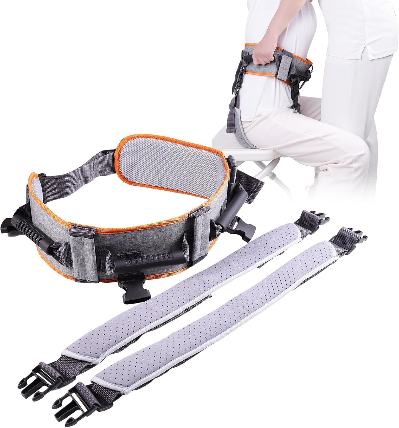 Details: Patient Transfer Belt - Paralyzed Persons Body Lifting Aids - Nylon Leg Loops - Orange-Gray Multifunctional Care Belt For Elderly People With Walking Disabilities - Walking Safety Assistance Device.