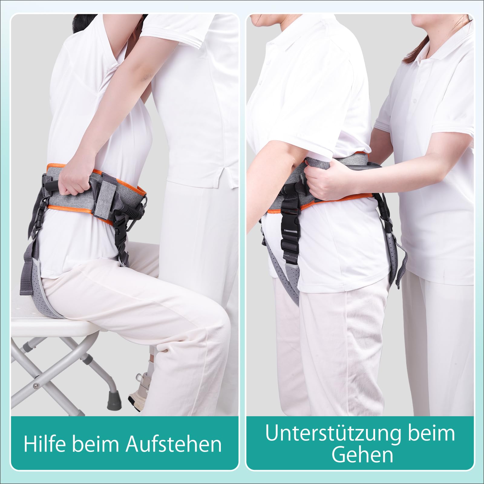 - ERGONOMIC HANDLING: The belt's horizontal and vertical handles allow the patient to be moved in any desired direction, providing comfortable and controlled use for caregivers and relatives.