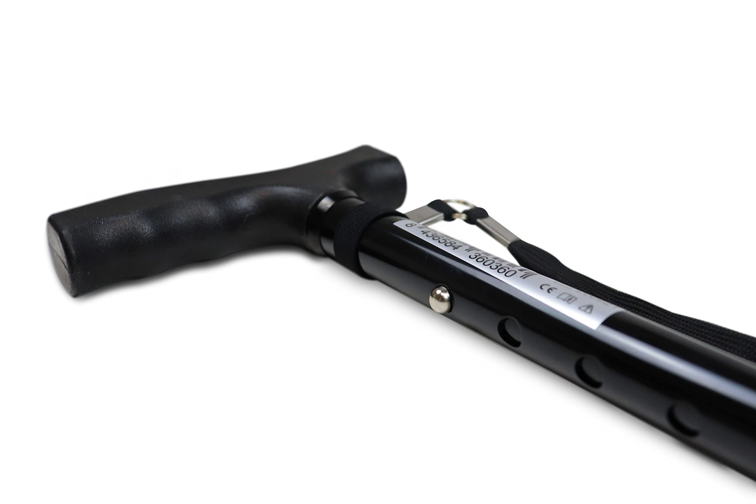 PEPE Mobility - Folding Walking Stick for Men, Height-Adjustable Walking Stick for Women, Seniors, Aluminum, Foldable (Black)