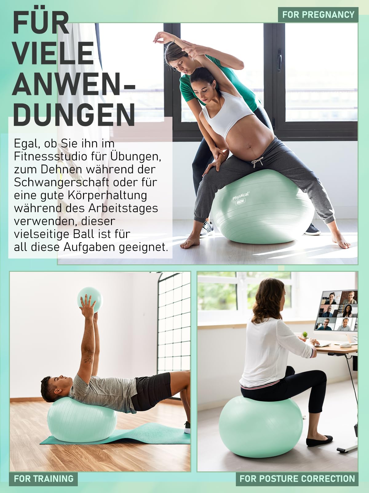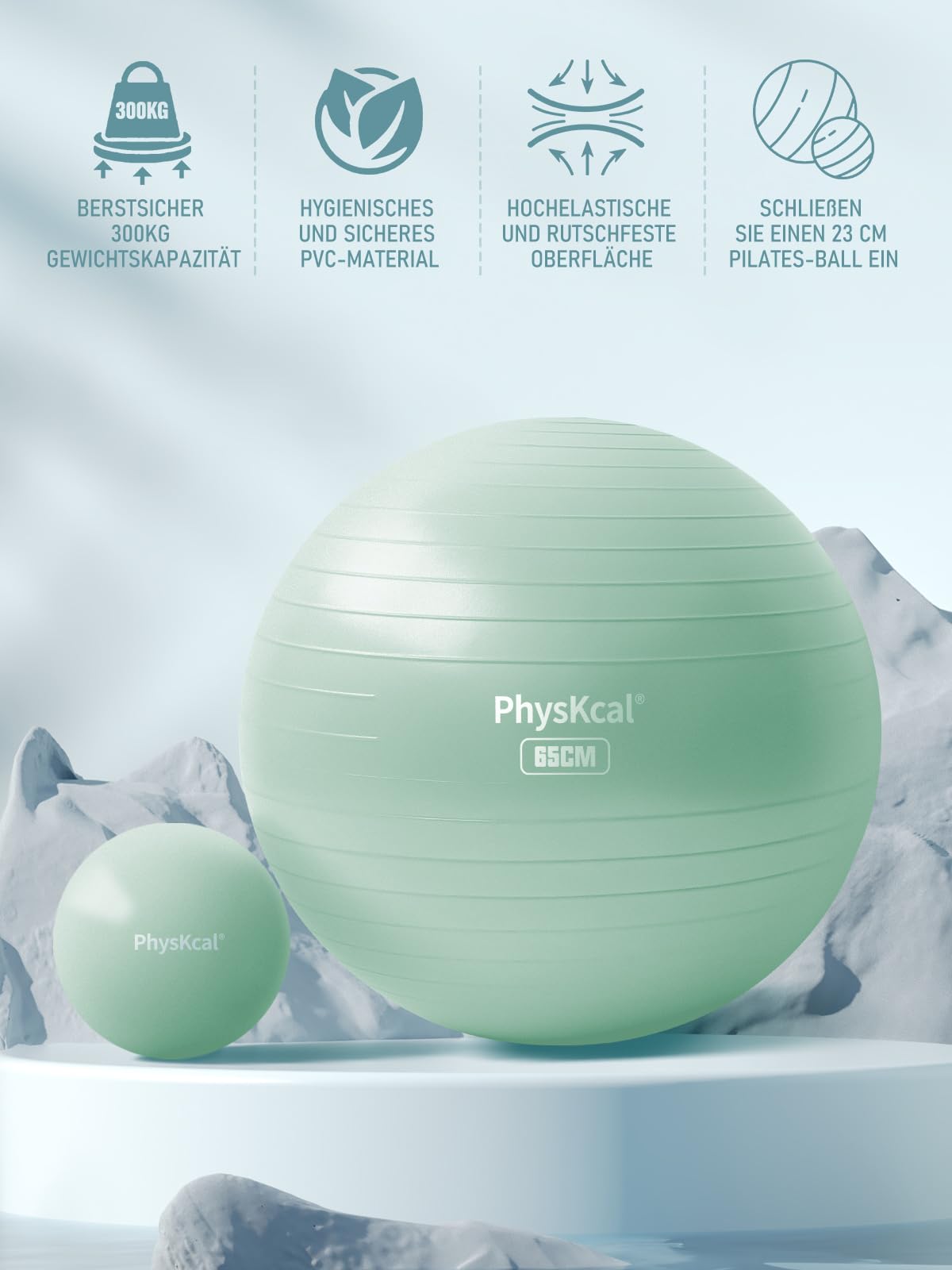 Brand: PhysKcal Color: Light turquoise Characteristics: π€DURABLE, STURDY - The PhysKcal exercise ball supports up to 300kg/660lbs dynamic load (2000lbs... Read more