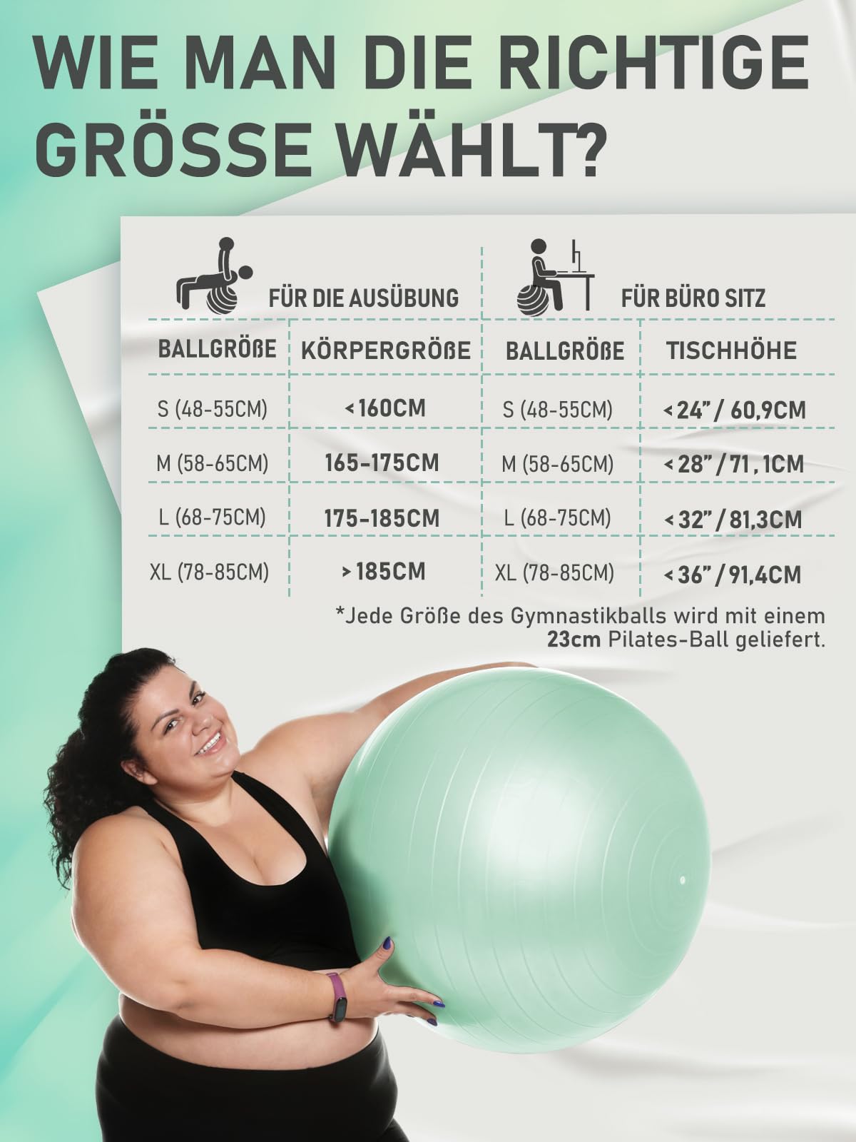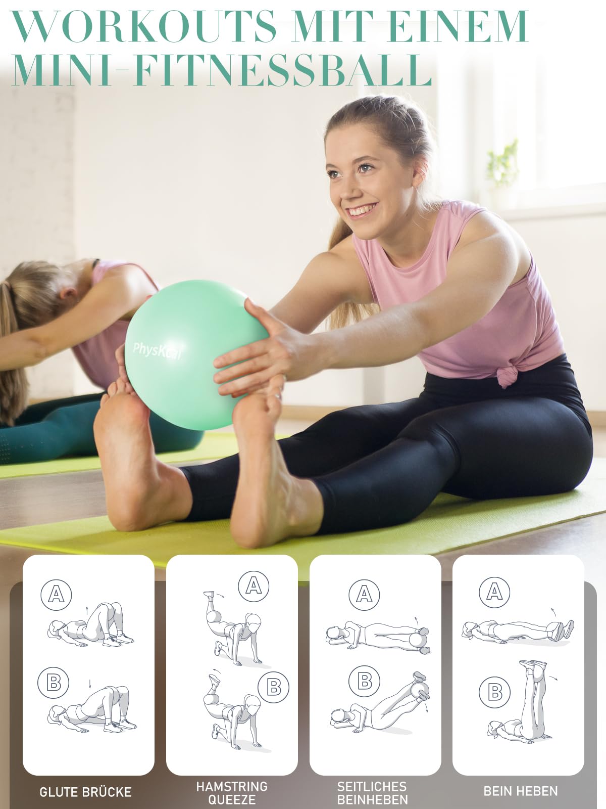 PhysKcal 65cm Light Turquoise Thick Exercise Ball and 23cm Pilates Ball Set, Anti-Burst Exercise Ball, Anti-Slip Seat Ball, Balance Ball, Yoga Ball for Home, Gym and Office