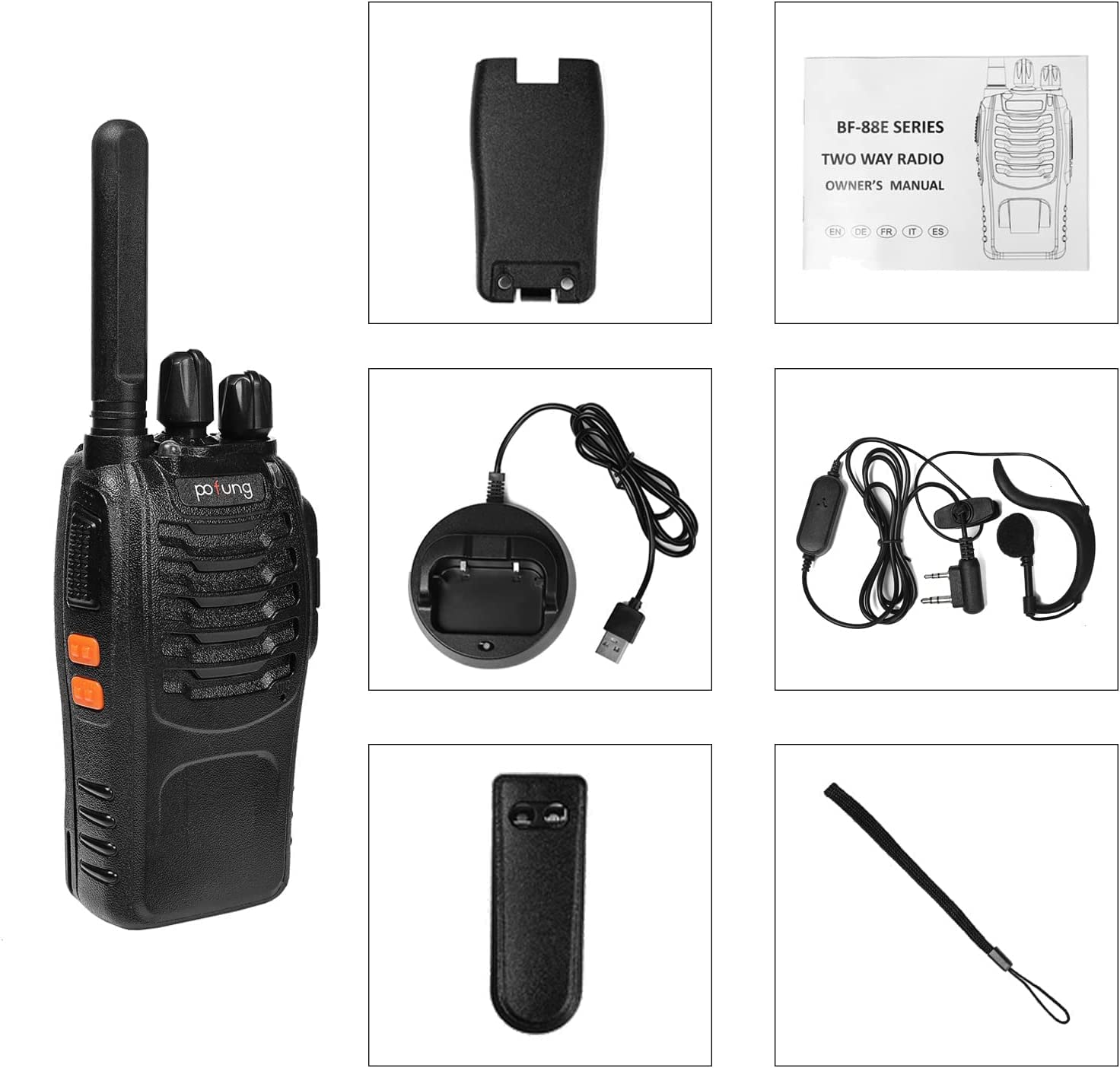 Pofung PT88E Walkie Talkie PMR446 License-Free Two-Way Radio, 16-Channel Long Range Walkie Talkies with Charging Cradle and Earpieces (Black, 3-Pack)