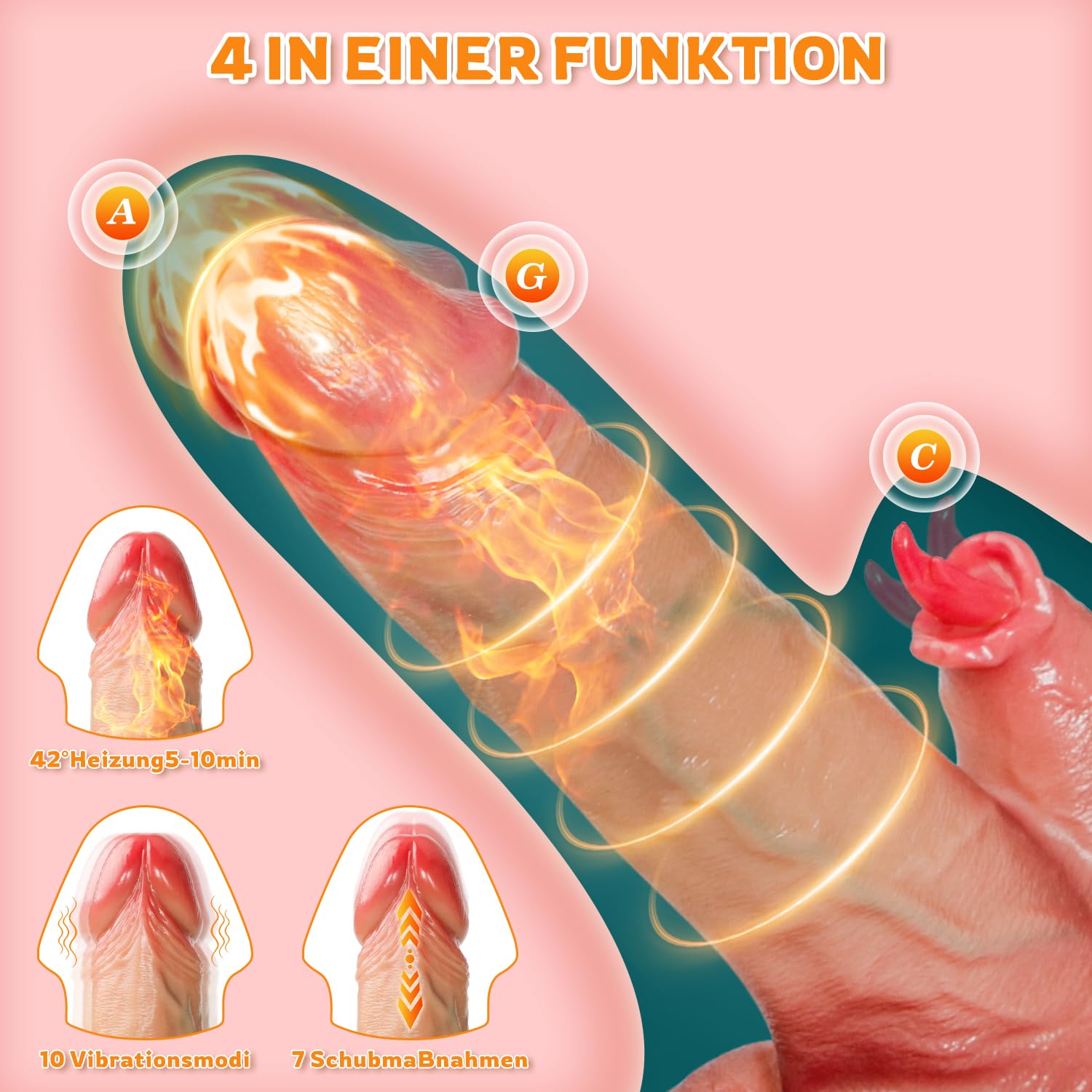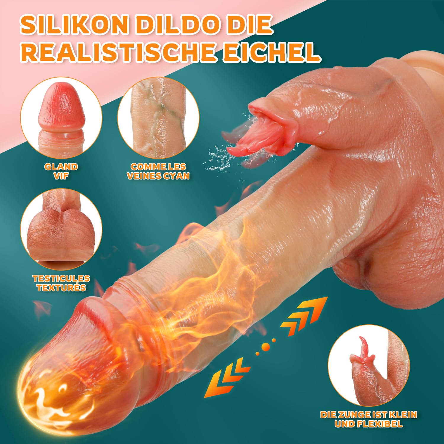 Realistic vibrators dildo for women, anal dildo vibration with 10 vibrations 7 tongue licking 7 thrusting measures, sex toy for women with heating, dildo cock vibrator penis G spot