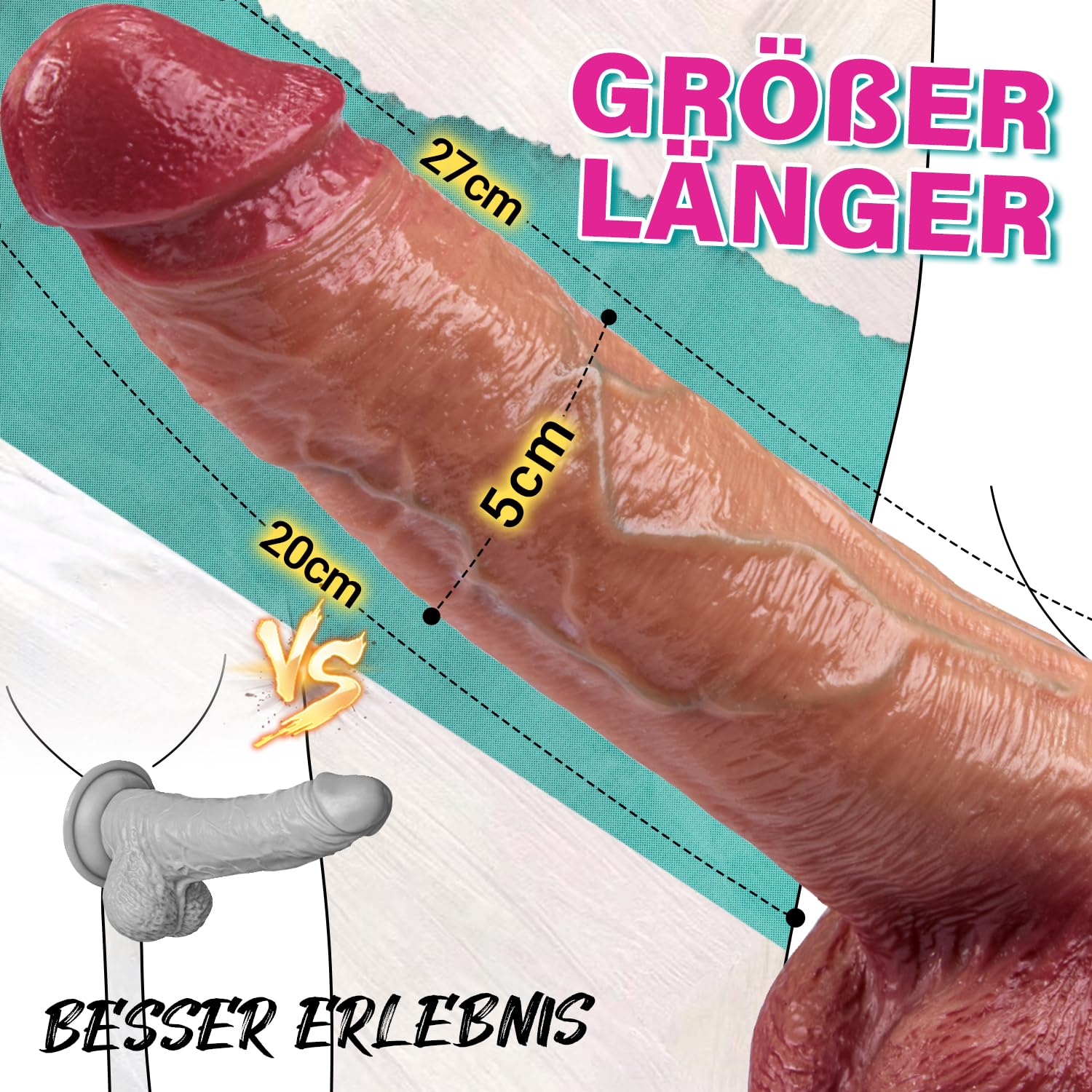 - Longer and thicker dildo for advanced users: Are you looking for a larger and longer dildo that can penetrate the deepest parts of your body? This large dildo has a total length of 27 cm. When such a large dildo with an insertable length of 21 cm penetrates your secret garden, you'll feel instantly fulfilled. Whether you're looking for an enhanced G-spot orgasm or anal stimulation, this realistic dildo will satisfy your desires and fantasies.