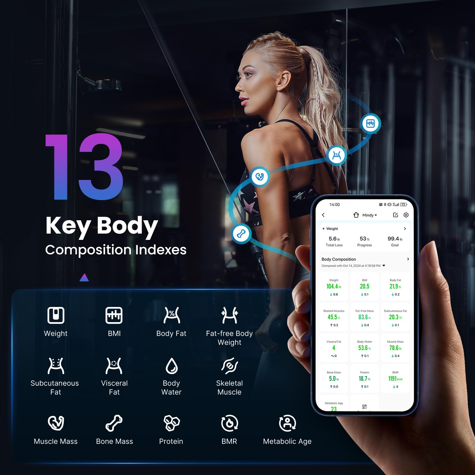 RENPHO Digital Bathroom Scale, Bluetooth Body Fat Scale with High-Precision Sensors, Smart Scale with Body Fat and Muscle Mass 180 kg/400 lbs