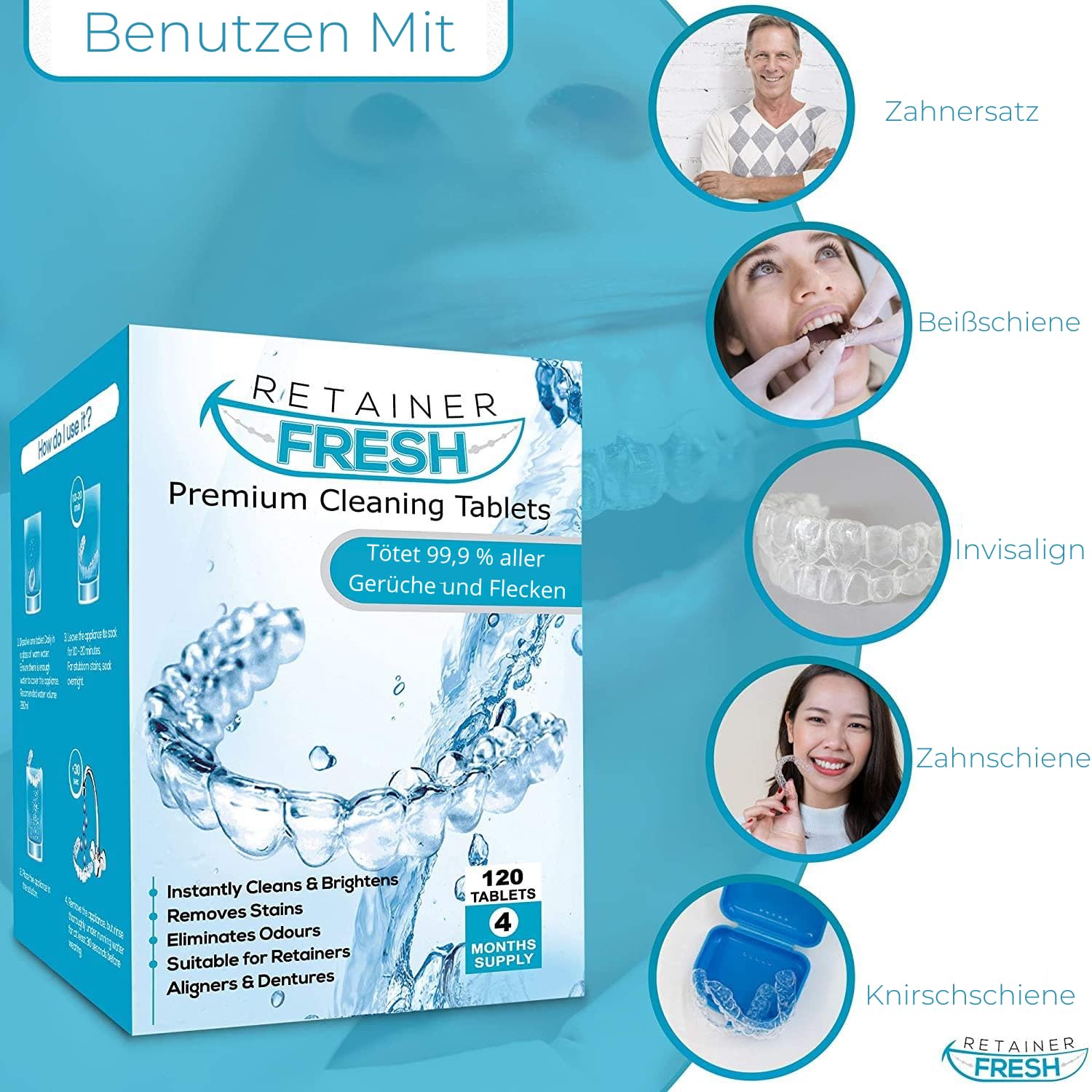 Retainer Cleaning Tablets – 120 Retainer Tablets Keep Your Retainer Fresh and Stain-Free – Retainer Cleaner Tablet, Mouthguard, Denture Cleaner Tabs, Dental Splint