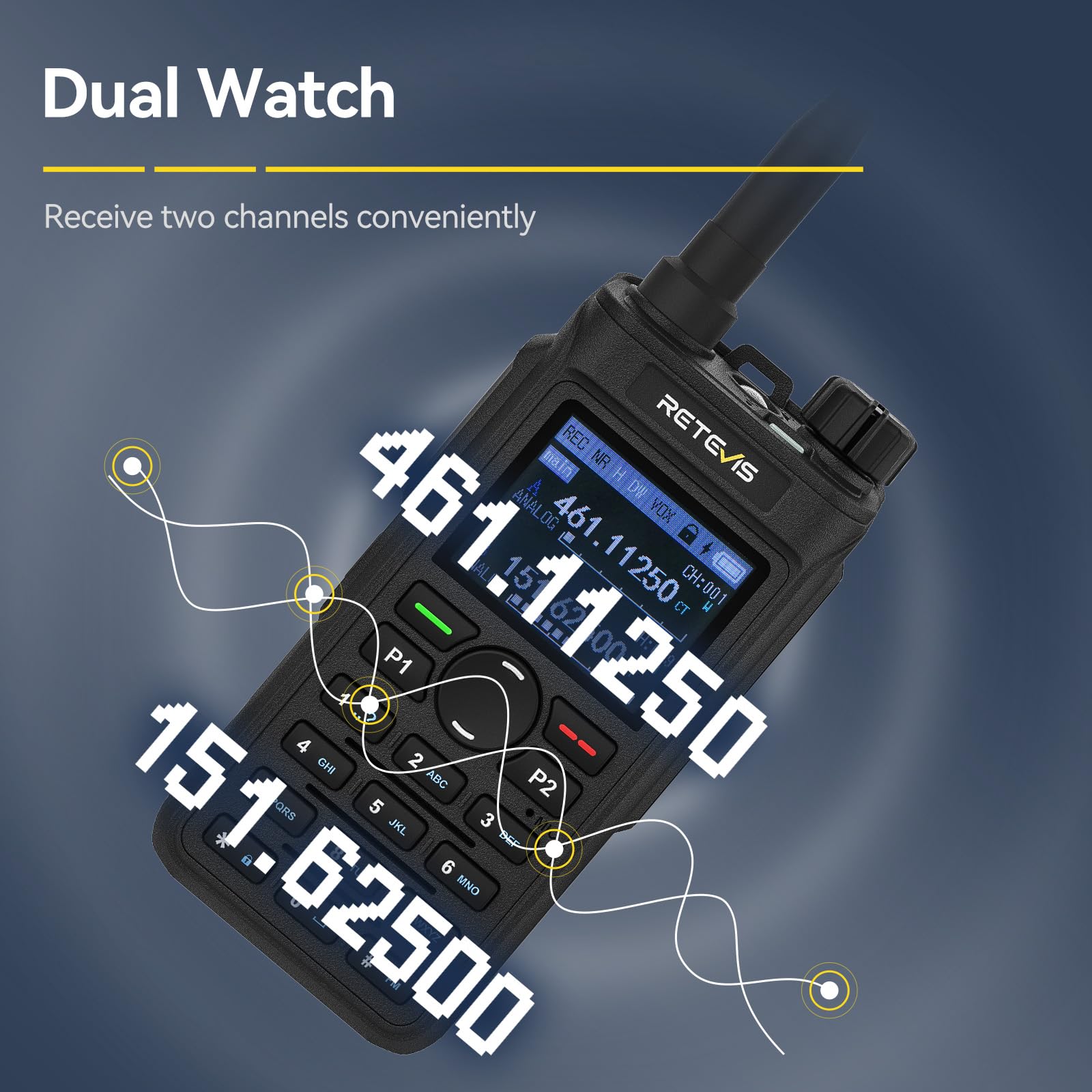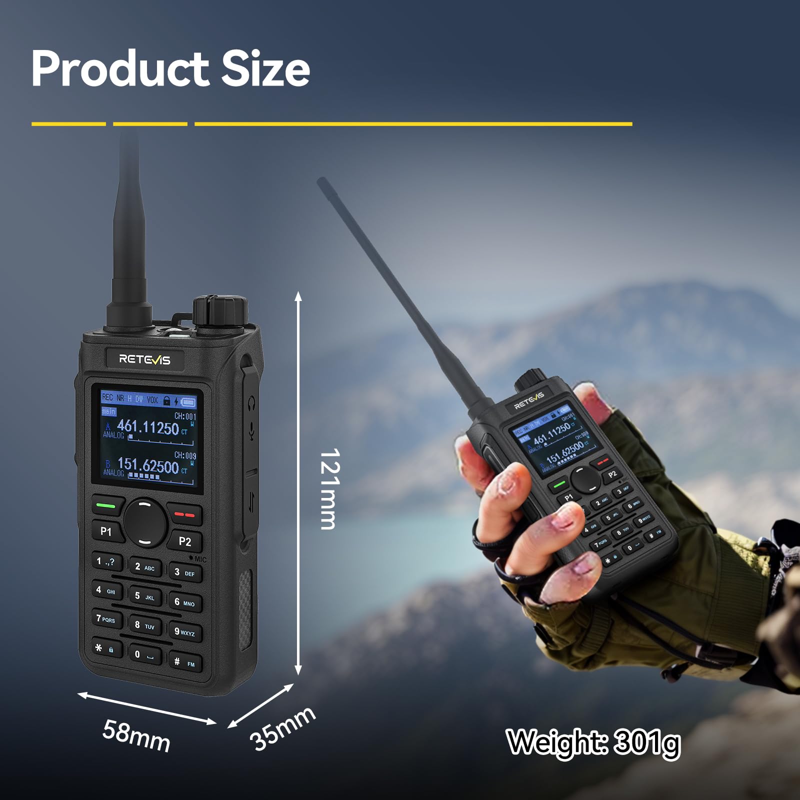 Retevis C62 Walkie Talkie Dual Band, Professional Ham Radio with LCD Screen, High-Performance Long-Range Two-Way Radio, 2000mAh, for Hiking/Hunting/Camping (Black, 1 Pack)