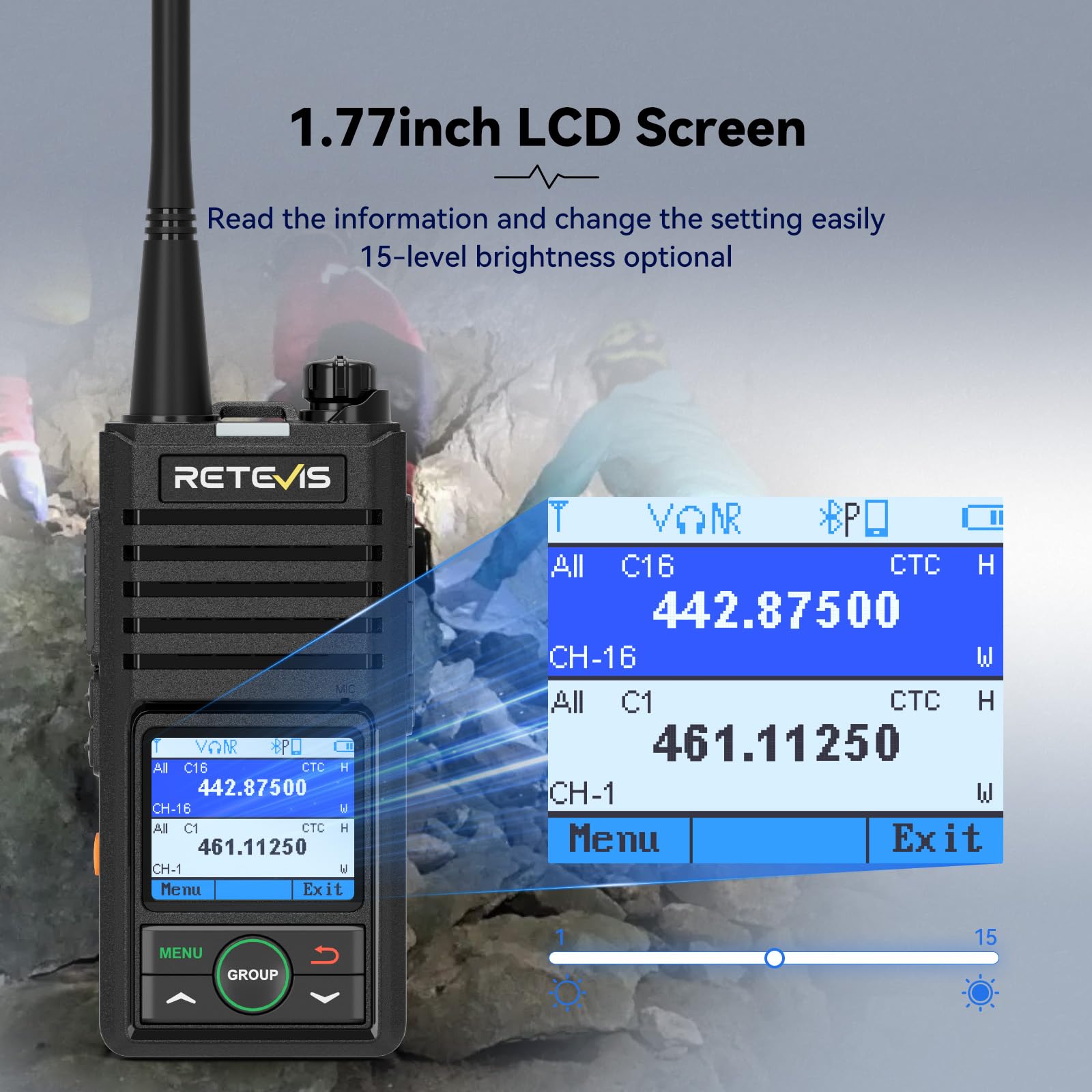 Retevis RB658 Walkie Talkies, Professional 2-Way Radio, APP Setting, Intelligent Noise Reduction, Alarm, 1800mAh Rechargeable Two-Way Radios for Adults, Motorcycle (1 Pack, Black)