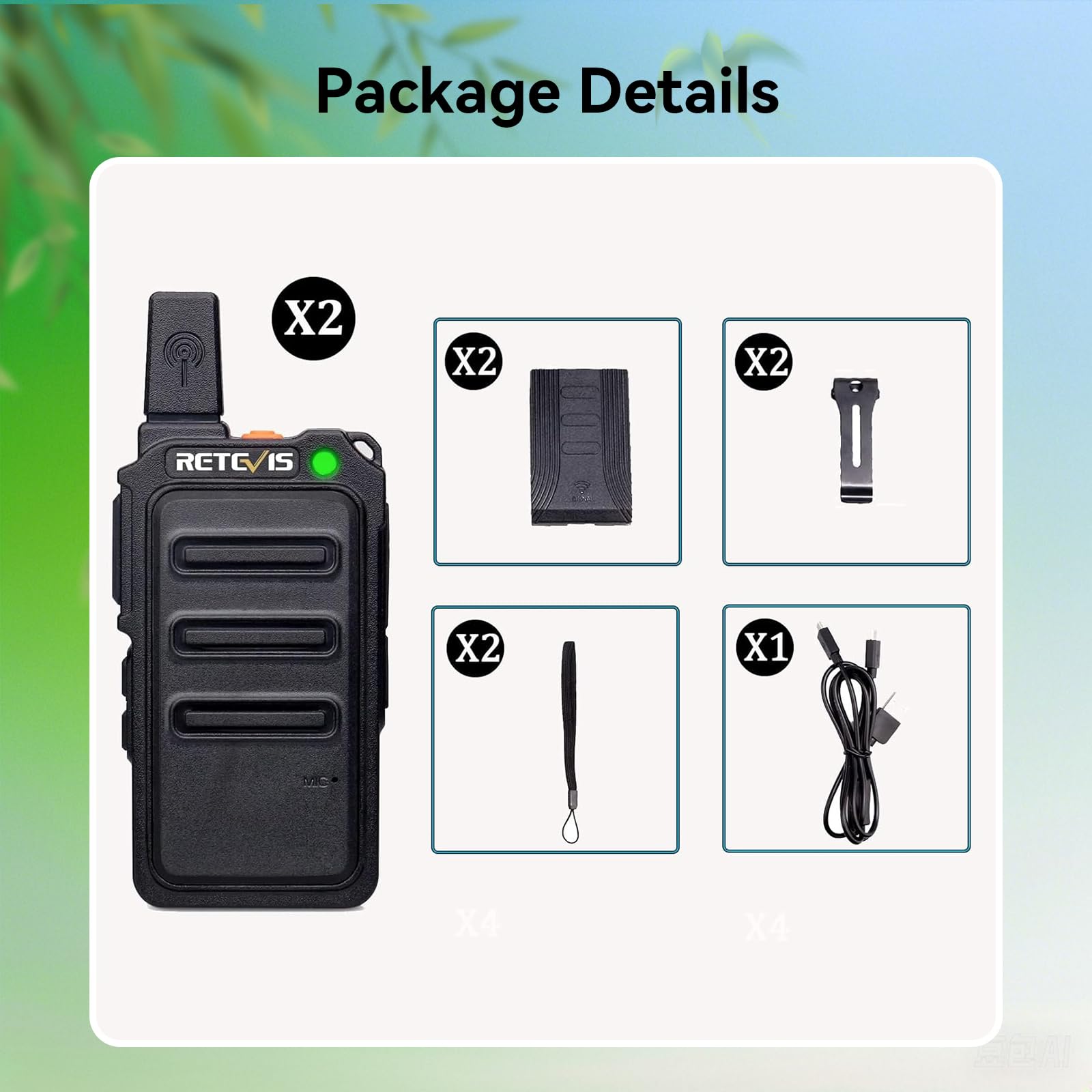 Retevis RT619 Walkie Talkie, PMR446 Rechargeable 2-Way Radio USB 1300mAh Battery, VOX License-Free, Mini Walkie Talkies Professional for Family, Camping (2 Pack, Black)