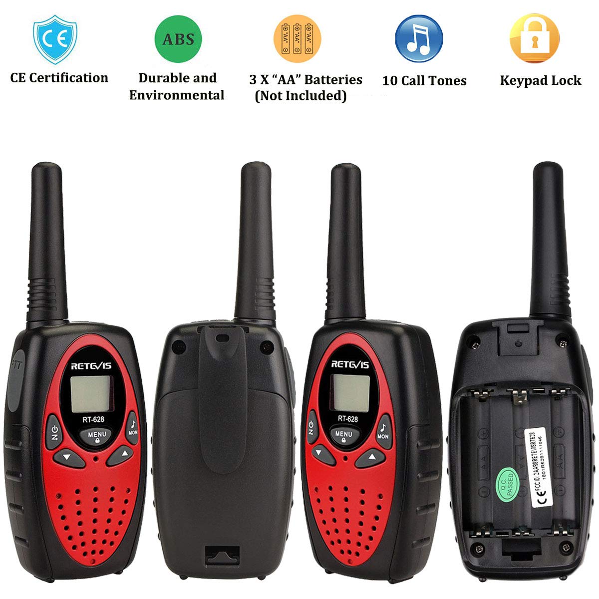 - With the belt clip on the back, children can attach the walkie-talkies to their clothes or anywhere they like. Each walkie-talkie requires 3 AA batteries (not included).