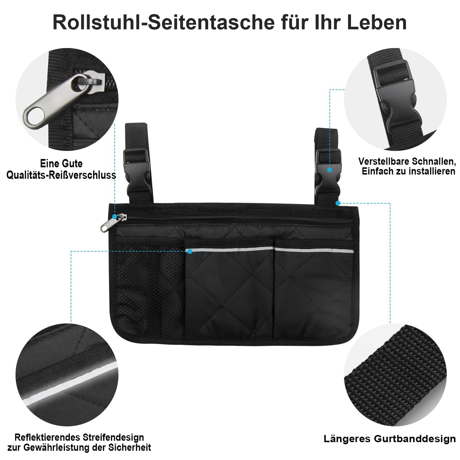 - ✔ Ensuring Safety: Apart from the versatility, we have also added reflective strips on the wheelchair bags that make the item visible at night from up to 300 feet away to ensure the safety and confidence of users.