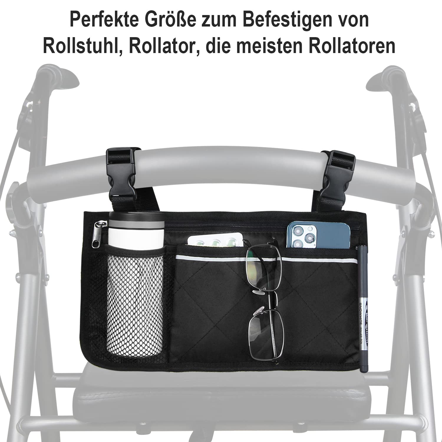 - ✔ Fits most wheelchairs or walking aids: With the adjustable fastening straps, they can be easily attached to most wheelchairs, walking aids, rollators or scooters.
