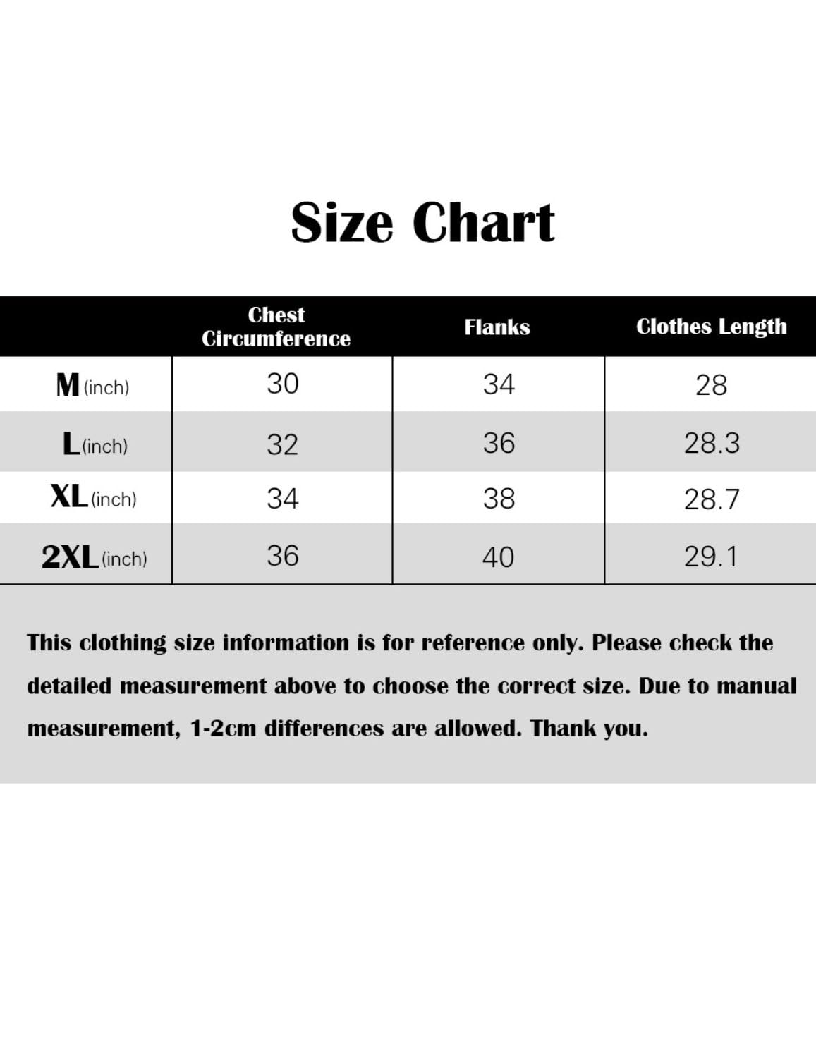 Note: Please check the size chart carefully and choose the size according to your actual size.
