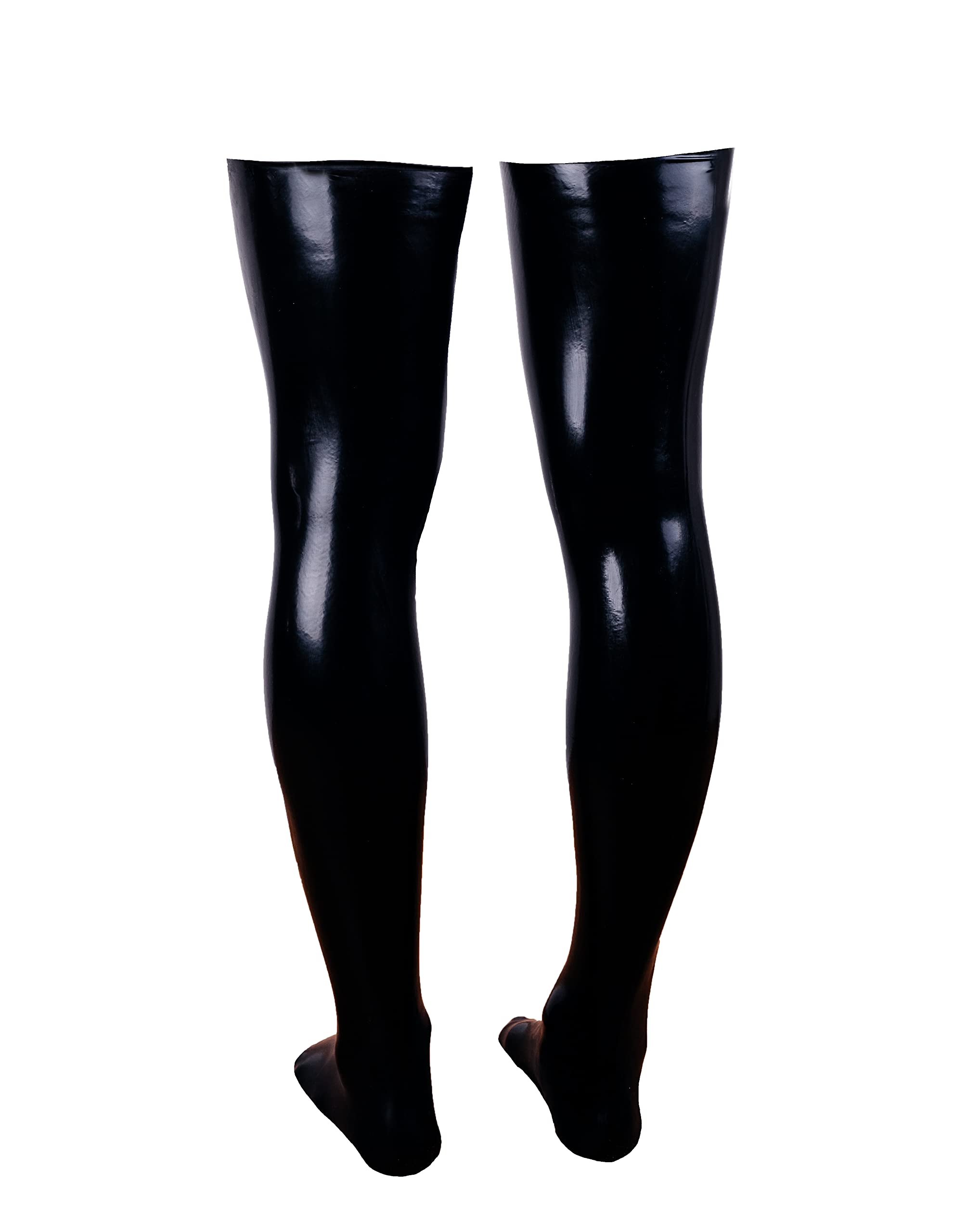 The stockings envelop almost the entire leg in latex, creating a very intense wearing experience. The latex accentuates and shapes the legs.