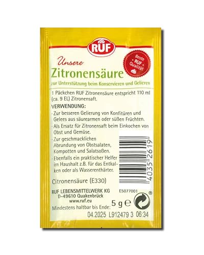 - PRACTICAL ALL-ROUNDER: Our RUF citric acid can be used to support preserving and gelling as well as to round off the flavor of fruit salads, compotes and salad dressings