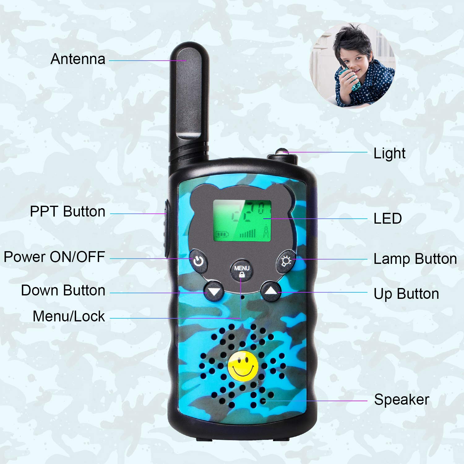 Brand: SAJGOP Color: blue camouflage Characteristics: [16 Channels and Over 4 km Range] This walkie-talkie set for kids features 16... Read more
