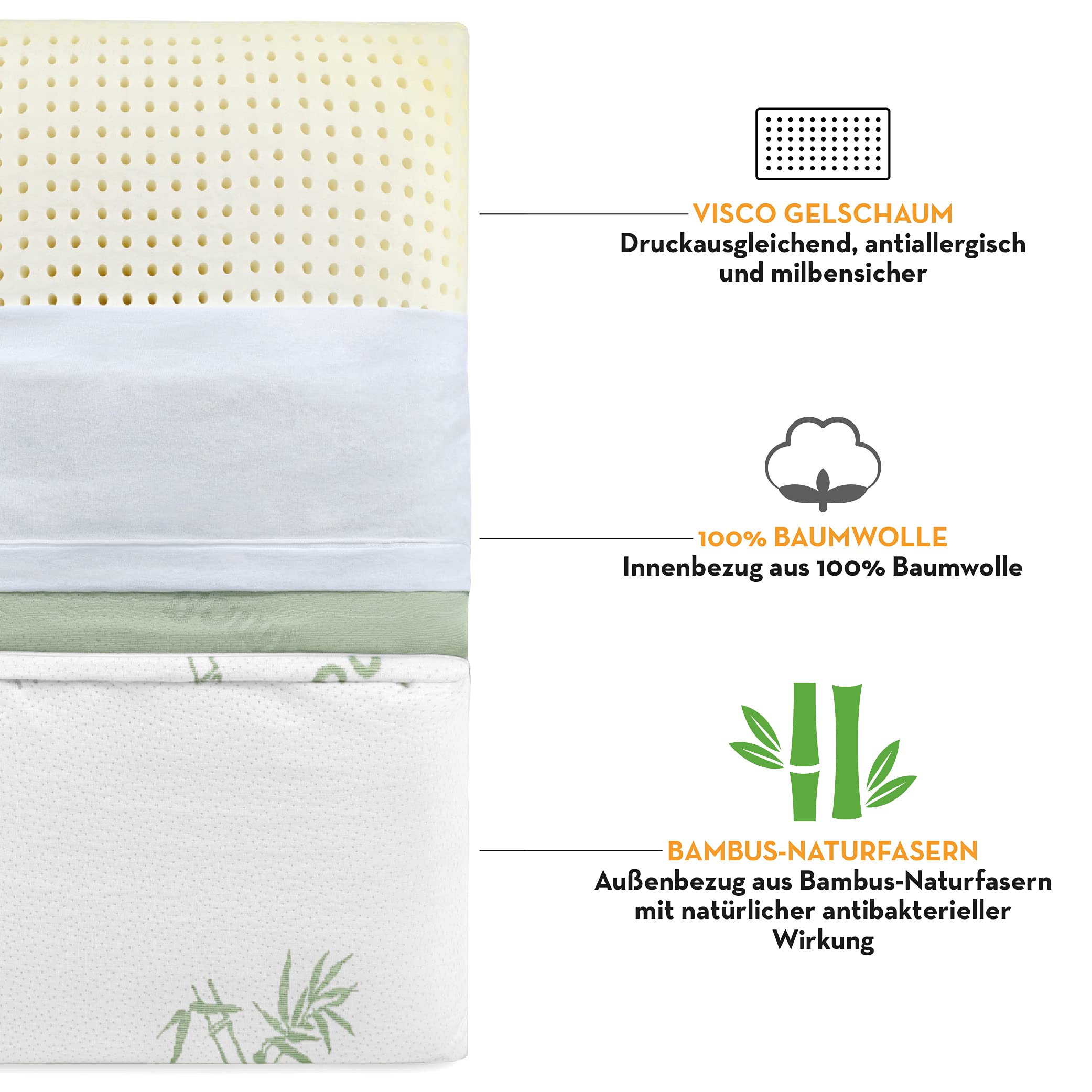 Siebenschläfer Orthopedic Neck Support Pillow - Pillow made of pressure-equalizing visco-gel foam (memory foam) with bamboo cover - Pillow in 72x42cm - Height 15cm