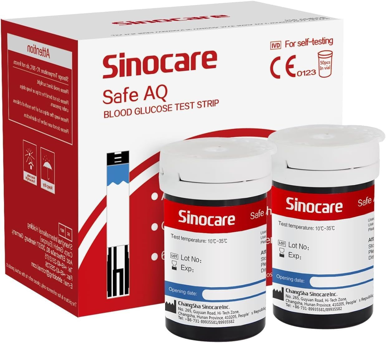 - 【Safe AQ Smart Blood Glucose Test Strips Package Included】: Sinocare Safe AQ blood glucose test strips 50 are only for Sinocare Safe AQ Smart blood glucose meter, without lancing device or lancets. If you find that the Sinocare test strips you purchased are not compatible with your Sinocare meter, please do not hesitate to contact us to solve your problem.